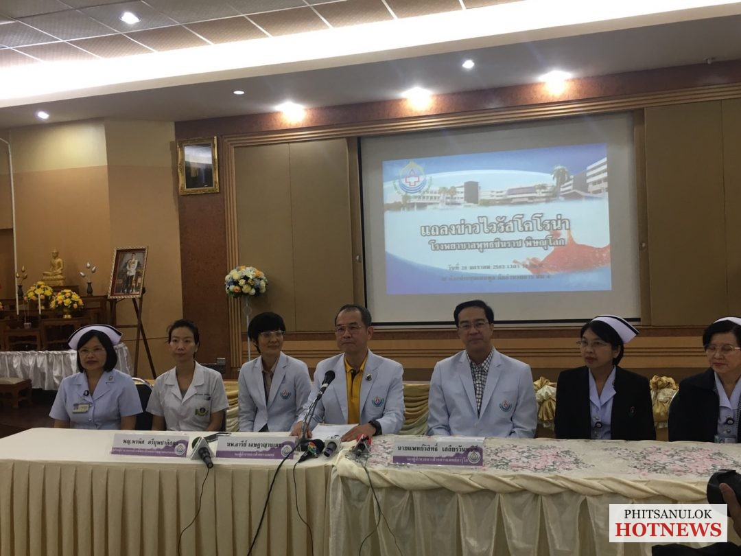 เวลา 11.00 น.วันที่ 28 มกราคม 2563 ณ ห้องประชุมตึกอำนวยการโรงพยาบาลพุทธชินราชพิษณุโลก นายแพทย์อารีย์ เจษฎาญานเมธา รองผู้อำนวยการฝ่ายการแพทย์โรงพยาบาลพุทธชินราชพิษณุโลก นพ.วิสิทธิ์ เสถียรวันทนีย์ รองผู้อำนวยการฝ่ายการแพทย์อาวุโสโรงพยาบาลพุทธชินราชพิษณุโลก และ แพทย์หญิงพรพิศ ศรีบุพชาติสกุล ผช.ผอ.ด้านพัฒนาสังคม จิตวิญญาณและครอบครัว แถลงข่าวสื่อมวลชนกรณีการตรวจผู้ป่วยต้องสงสัยเข้าเกณฑ์ไวรัสโคโรน่า หลังจากตั้งแต่ต้นปี 2563 ที่ผ่านมาโรงพยาบาลพุทธชินราชพิษณุโลกได้ตั้งจุดคัดกรองเพื่อคัดกรองผู้ป่วยต้องสงสัยไวรัสโคโรน่าและในวันที่ 26 มกราคม 2563 ที่ผ่านมาโรงพยาบาลพุทธชินราชพิษณุโลกรับผู้ป่วยเป็นชาย 1 ราย ภูมิลำเนาอยู่อำเภอบางระกำ เดินทางกลั จากเมืองอู่ฮั่นประเทศจีนและเข้ามารักษาตัวที่โรงพยาบาลพุทธชินราชพิษณุโลกด้วยอาการมีไข้สูง จากนั้นได้ส่งตรวจผลที่ห้องแลป ซึ่งผลตรวจจากห้องแล็บไม่พบการติดเชื้อไวรัส โคโรนา