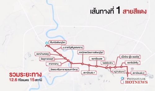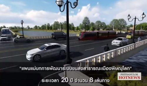 วันที่ 18 กุมภาพันธ์ 2563 น.ส.ไตรศุลี ไตรสรณกุล รองโฆษกประจำสำนักนายกรัฐมนตรี เปิดเผยว่า ที่ประชุมคณะรัฐมนตรี (ครม.) เห็นชอบร่างพระราชกฤษฎีกากำหนดให้การรถไฟฟ้าขนส่งมวลชนแห่งประเทศไทย (รฟม.) ดำเนินกิจการรถไฟฟ้า พ.ศ. … เพื่อรองรับโครงการรถไฟฟ้าในจังหวัดพิษณุโลกตามที่กระทรวงคมนาคมเสนอ ซึ่งเป็นการพัฒนาโครงข่ายคมนาคมเชื่อมโยงกับเมืองหลักในภูมิภาคและแก้ไขปัญหาการจราจรจากเมืองหลักในภูมิภาคสู่ปริมณฑลและกรุงเทพฯ ด้วยระบบรถไฟฟ้าขนส่งมวลชนในเมืองหลัก 6 เมืองหลักในภูมิภาค ได้แก่ จ.เชียงใหม่ จ.ภูเก็ต จ.สงขลา จ. นครราชสีมา จ.ขอนแก่น และจ.พิษณุโลก ทั้งนี้สำนักนโยบายและแผนการขนส่งและจราจร (สนข).ได้ว่าจ้างม.นเรศวร ดำเนินการศึกษาความเหมาะสมและออกแบบระบบขนส่งสาธารณะเมืองพิษณุโลก ซึ่งให้ดำเนินการตามแผนระยะที่ 1 เส้นทางสายสีแดง ม.พิษณุโลก ห้างสรรพสินค้าเซ็นทรัลพิษณุโลก เป็นเส้นทางที่สมควรดำเนินการลำดับแรก โดยเป็นระบบขนส่งสาธารณะรูปแบบ “รถรางล้อยาง” ระยะทาง 12.6 ก.ม.จำนวน 15 สถานี