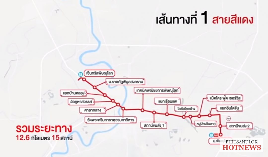 โครงการระบบขนส่งมวลชนจังหวัดพิษณุโลก สายสีแดง (ช่วงมหาวิทยาลัยพิษณุโลก – เซ็นทรัลพลาซ่า) เป็นหนึ่งในโครงการพัฒนาโครงข่ายคมนาคมเชื่อมโยงเมืองหลักในภูมิภาค และแก้ไขปัญหาจราจรจากเมืองหลักในภูมิภาคสู่ปริมณฑลและกรุงเทพมหานคร เพื่อรองรับการเดินทางของประชาชนให้สามารถเดินทางจากต้นทางไปถึงปลายทางได้อย่างต่อเนื่อง สะดวกสบายและปลอดภัย ตามกรอบยุทธศาสตร์การพัฒนาโครงสร้างพื้นฐานด้านคมนาคมขนส่งของไทย พ.ศ. 2558-2565 โดยได้มอบหมายให้สำนักงานนโยบายและแผนการขนส่งและจราจร (สนข.) ดำเนินการศึกษาความเหมาะสมและออกแบบระบบขนส่งสาธารณะเมืองพิษณุโลก ซึ่งในเบื้องต้นได้มีการเสนอโครงการเป็น 2 ระยะ โดยระยะที่ 1 ประกอบด้วย 6 เส้นทาง ระยะทางรวม 80.5 กิโลเมตร ระยะที่ 2 ประกอบด้วยส่วนต่อขยายเส้นทางเดิม 3 เส้นทาง และเส้นทางใหม่ 2 เส้นทาง ระยะทางรวม 30.1 กิโลเมตร ผลการศึกษาได้เสนอให้ดำเนินการตามแผนระยะที่ 1 เส้นทางสายสีแดง (มหาวิทยาลัยพิษณุโลก – ห้างสรรพสินค้าเซ็นทรัลพิษณุโลก) เป็นเส้นทางที่สมควรดำเนินการเป็นลำดับแรก และมีมติคณะรัฐมนตรีมอบหมายให้ การรถไฟฟ้าขนส่งมวลชนแห่งประเทศไทย (รฟม.) เป็นผู้ดำเนินการโครงการต่อไป