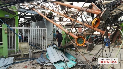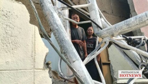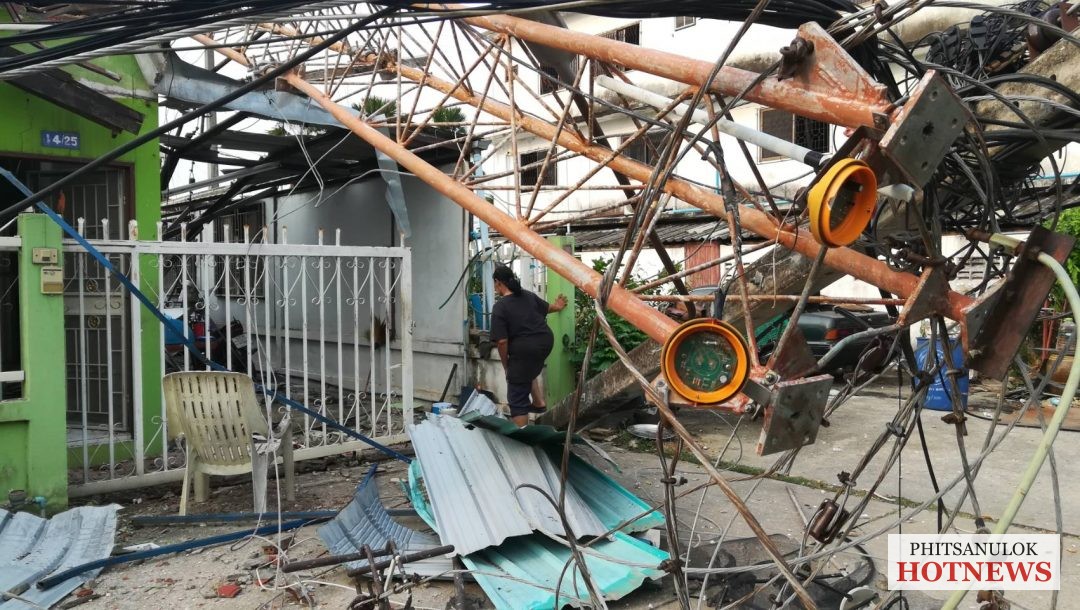 ที่บ้านเลขที่ 44/25 ม.3 ต.ท่าทอง อ.เมือง จ.พิษณุโลก บ้านของนายพจน์ จันทร์หอม อายุ 70 ปี และนางสาวปราณี วิเศษสรรค์ อายุ 62 ปี สามีภรรยาที่ถูกเสาวิทยุของสอต.โค่นทับเสียหาย เปิดเผยว่า รู้สึกตกใจอย่างมาก จุดที่เสาวิทยุทับโค่นเป็นห้องครัว และเป็นจังหวะที่โชคดีมาก ที่ในทุกคืนในช่วงเวลาดังกล่าว นางสาวปราณี จะนั่งอยู่ในบริเวณห้องครัว เพื่อเตรียมขิงดอง ไปขายกับไส้กรอกทุกวัน แต่เมื่อคืนนี้ไม่ได้ทำขิงดอง เพราะวันนี้ติดภารกิจจะไปร่วมงานศพ ทำช่วงที่เกิดเหตุไปอยู่ในบริเวณบ้าน ไม่ได้นั่งอยู่ในห้องครัวตามปกติ แต่ทั้งคู่ก็ยังตกใจอย่างมาก เพราะคิดว่า ถูกฟ้าผ่าใส่บ้าน แต่หลังจากเกิดเหตุสักระยะได้ออกจากบ้านมาสำรวจความเสียหาย ก็พบว่าเป็นเสาวิทยุของสอต.