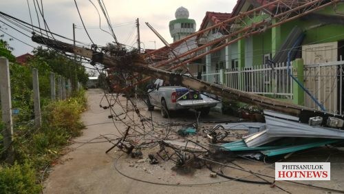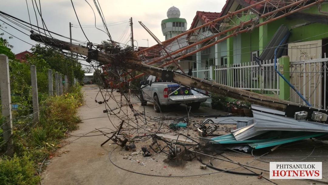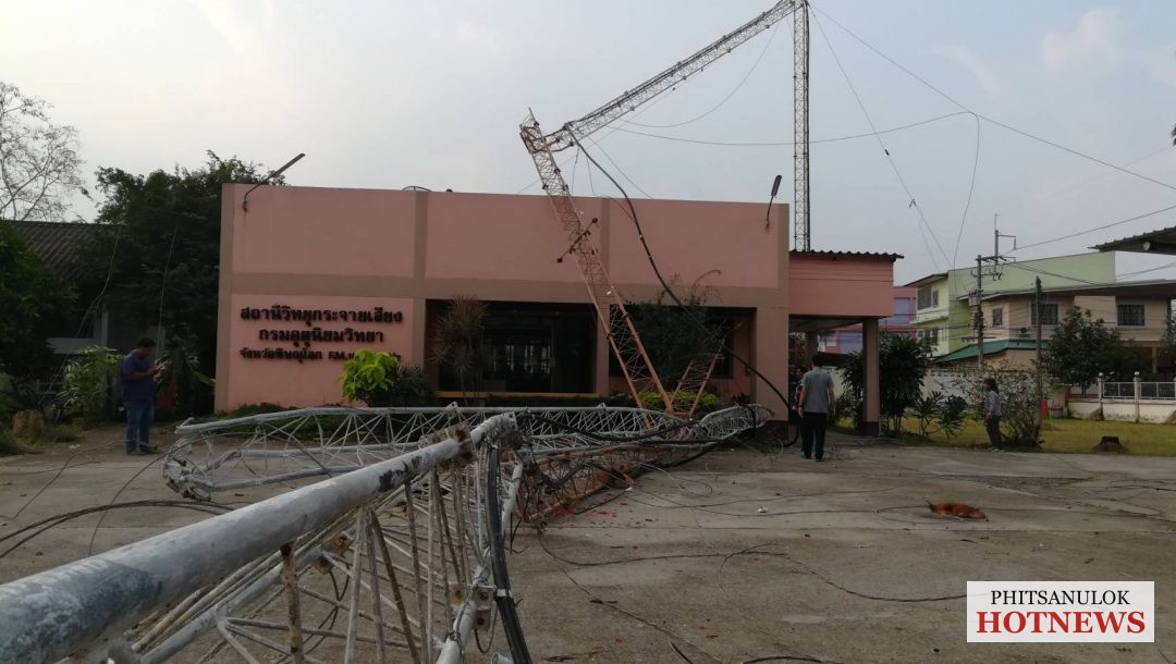 นายนนท์ธวัช เนื่องจำนงค์ ผช.ผอ. สถานีวิทยุสอต.เปิดเผยว่า ช่วงเวลากำลังจะเกิดพายุตนนั่งประจำการอยู่บนหอสถานีตรวจเรดาห์ มีกลุ่มพายุทิศทางลมพัดมาจากทิศตะวันตกเฉียงใต้มุ่งเข้าสู่ตัวเมืองพิษณุโลก และลมพัดรุนแรงประมาณครึ่งชั่วโมง ที่สถานีมีความเสียหายหักที่สุด เสาส่งอากาศสูง 105 เมตร หักโค่นลงมา ล้มไปทับบ้านเรือนประชาชขนเสียหาย และอยู่ระหว่างการสำรวจเพื่อดำเนินการชดใช้ให้ประชาชน