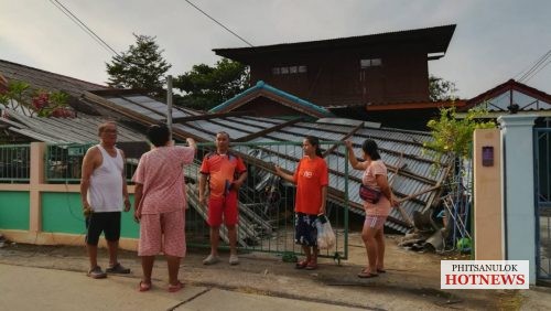 นอกจากนี้ ที่บ้านนายอั้น บัวทอง อายุ 55 ปี เลขที่ 46 ม.6 ต.ท่าทอง อ.เมือง จ.พิษณุโลก เป็นอีกหลังหนึ่งที่ได้รับความเสียหายจากพายุฤดูร้อนเมื่อคืนที่ผ่านมา แรงพายุได้พัดหลังคาชั้นสองของบ้าน ตกลงมาบริเวณหน้าบ้าน โชคดีที่ช่วงเกิดเหตุ ไม่ได้พักอาศัยอยู่บนชั้นสอง ซึ่งเมื่อเช้าที่ผ่านมา นายกอบต.ท่าทอง ได้ลงพื้นที่มาสำรวจความเสียหายเพื่อเตรียมการช่วยเหลือต่อไป