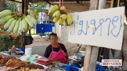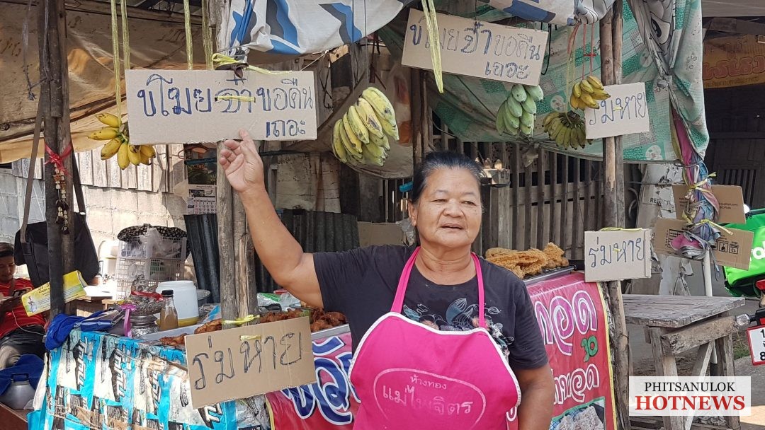 วันที่ 11 มี.ค. 2563 ผู้สื่อข่าวรับแจ้งว่า มีแม่ค้าขายกล้วยทอดเขียนป้ายประชดโจรหลังถูกขโมยร่มบังแดด จึงลงพื้นที่ตรวจสอบบริเวณร้านขายกล้วยทอดป้าขวัญใจ ริมถนนพุทธบูชาเลียบริมแม่น้ำน่าน เขตเทศบาลนครพิษณุโลก พบเป็นเพิงไม้มุงด้วยสังกะสีเปิดขายกล้วยทอด เผือกทอด มันทอด พบกับนางขวัญใจ พูพุ่ม อายุ 63 ปี อยู่บ้านเลขที่ 91 ถ.บรมไตรโลกนารถ ต.ในเมือง อ.เมือง จ.พิษณุโลก ซึ่งกำลังสาละวนเปิดร้านและตั้งน้ำมันเพื่อทอดกล้วยขายให้กับลูกค้า โดยบริเวณด้านหน้าร้านมีป้ายที่เขียนด้วยปากกาเมจิกติดเอาไว้จำนวนมาก อาทิ “ขโมยจ๋าขอคืนเถอะ ร่มหาย” สร้างความแปลกใจให้กับผู้พบเห็นเป็นอย่างมาก จนผู้ที่สัญจรผ่านไปมาต่างแวะมาไถ่ถามและขอถ่ายรูป
