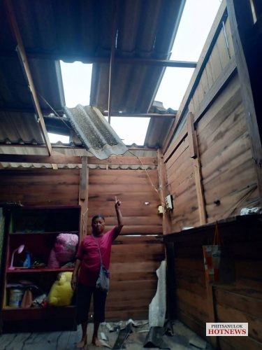 ขณะที่ลมพายุฝนยังได้ส่งผลกระทบต่อประชาชนในพื้นที่ อำเภอชาติตระการ มีบ้านเรือนเสียหาย จำนวน 37 หลังคาเรือนอำเภอพรหมพิราม มีบ้านเรือนเสียหาย จำนวน 2 หลังคาเรือน และอำเภอนครไทย มีบ้านเรือนเสียหายอีกจำนวน จำนวน 2 หลังคาเรือน เบื้องต้นนายพิพัฒน์ เอกภาพันธ์ ผู้ว่าราชการจังหวัดพิษณุโลก ได้สั่งการให้เจ้าหน้าที่ป้องกันและบรรเทาสาธารณภัย ผู้นำท้องที่ แต่ละพื้นที่ เร่งสำรวจความเสียหายอีกครั้ง เพื่อให้ความช่วยเหลือประชาชนที่เดือดร้อนเป็นการเบื้องต้น