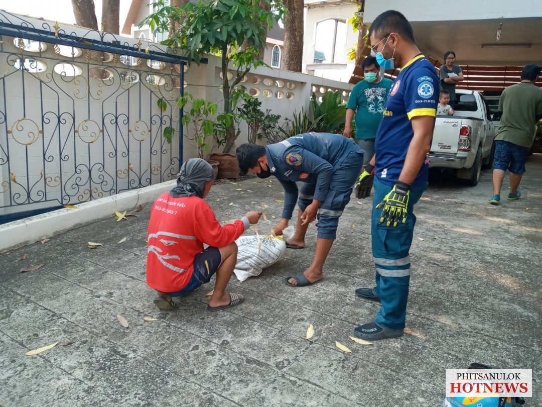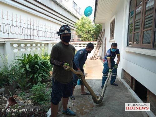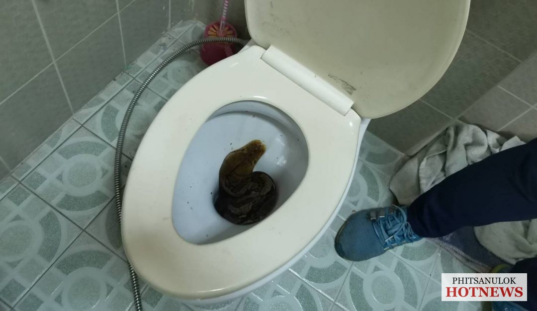 เวลาประมาณ 08.20 น. วันที่ 28 มีนาคม 2563 ศูนย์วิทยุกู้ภัยพิษณุโลก มูลนิธิประสาทบุญสถาน ได้รับแจ้งจากประชาชนขอความช่วยเหลือจับสัตว์เลื้อยคลาญประเภทงูในห้องน้ำ ถ.พระองค์ขาว ซ.26 ต.ในเมือง อ.เมือง จ.พิษณุโลกเจ้าหน้าที่น.เขตและอาสาสมัคร กู้ภัย ฯ ตรวจสอบพบงูเหลือมขนาดใหญ่ขดตัวอยู่ในโถชักโครกในห้องน้ำชั้น1ตัวบ้าน เบื้องต้นรอบแรกไม่สามารถนำตัวออกจากชักโครกได้ เพราะงูมีลำตัวขนาดใหญ่ เจ้าหน้าที่จึงมุดไปใต้ถุนบ้านปูนยกสูงพร้อมกับหลานเจ้าของบ้าน ไปช่วยกันทุบท่อระบายน้ำทิ้ง แล้วใช้กำลังดึงตัวงูย้อนมาทางท่อน้ำทิ้ง เนื่องจากงูตัวใหญ่มาก และมีแรงต้านเจ้าหน้าที่ตลอดเวลา ต้องใช้เวลานานเกือบ 2ชั่วโมงจึงจับกุมได้สำเร็จ เป็นงูเหลือม ยาวประมาณ 3.20เมตร เจ้าหน้าที่กู้ภัย ญได้นำปล่อยคืนสู่ธรรมชาติทุ่งนาเลี่ยงเมืองห่างไกลบ้านคน ส่วนท่อน้ำทิ้งที่ทุบแตกนั้น เจ้าของบ้านได้จ้างช่างมาดำเนินการซ่อม