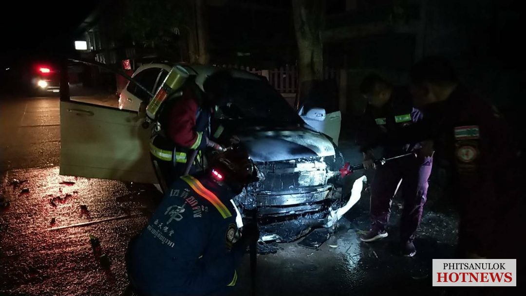 จากการตรวจสอบในเบื้องต้น รับแจ้งจากผู้ขับขี่ว่า ขณะเกิดเหตุตนกำลังขับรถคันดังกล่าวเพื่อเดินทางมาเยี่ยมญาติที่โรงพยาบาลวังทอง ขณะขับขี่มาถึงบริเวณทางเข้าหน้าโรงพยาบาล จู่ๆบริเวณห้องเครื่อง ได้เกิดกลุ่มควัน ขึ้นที่บริเวณฝากระโปรงด้านหน้ารถ จนได้กลิ่นเหม็นไหม้ ต้นจอดรถบริเวณริมทาง และลงไปดู ก็พบว่า ได้เกิดประกายไฟขึ้นบริเวณภายในห้องเครื่อง จึงพยายามจะเปิดฝากระโปรงรถด้านหน้าแต่ไม่ สามารถเปิดได้เนื่องจากว่ามีเปลวไฟลุกอย่างรุนแรงจึงรีบแจ้งเจ้าหน้าที่ ดับเพลิงและหน่วยกู้ภัย เข้ามาช่วยเหลือ สาเหตุเบื้องต้นคาดว่าน่าจะเกิดจาก ระบบแก๊ส รั่วไหล จนเกิดประกายไฟและเกิดความร้อนบริเวณหน้าห้องเครื่อง ส่งผลให้เกิด ไฟลุกไหม้ดังกล่าว.