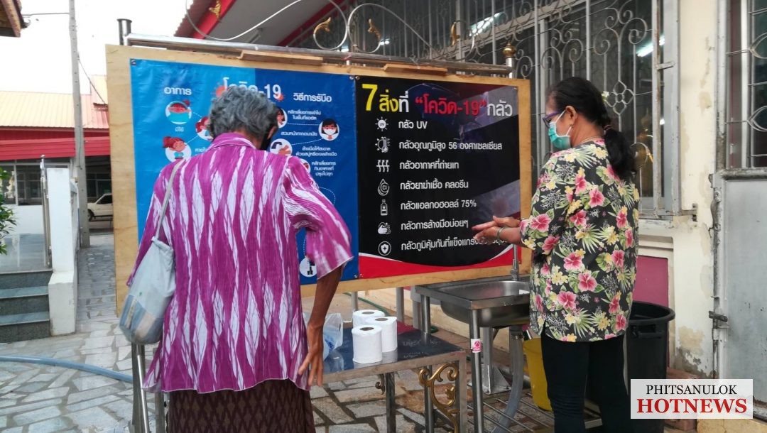 พิษณุโลก 31 มีนาคม 2563 วันพระ รายงานบรรยากาศการทำบุญของชาวพิษณุโลก หลายวัดงดจัดกิจกรรมทำบุญแล้ว เพื่อช่วยลดจำนวนคนที่จะออกมาพบปะกัน ลดโอกาสการรับและแพร่เชื้อโควิด-19 ที่วัดศรีวิสุธาราม หรือ วัดโคกมะตูม อ.เมือง จ.พิษณุโลก วันนี้ทางวัดงดกิจกรรมทำบุญ ไม่ให้มีพระขึ้นสวด แต่ยังเปิดโอกาสให้ญาติโยมที่ส่วนใหญ่เป็นผู้สูงอายุในละแวกรอบวัดได้มาถวายภัตราหารแด่พระภิกษุสงฆ์ ทางวัดจัดเตรียมเจลแอลกอฮอล์ล้างมือ และเก้าอี้ให้ประชาชนได้นั่งรักษาระยะห่าง