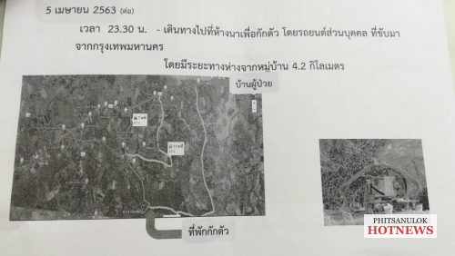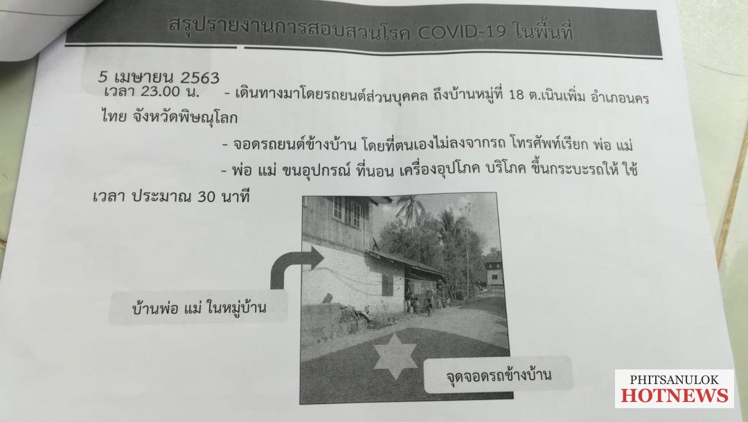 นายแพทย์ รัฐภูมิ ชามพูนท รักษาการนายแพทย์สาธารณสุขจังหวัดพิษณุโลก กล่าวว่า ทุกวันนี้เราให้เจ้าหน้าที่สืบสวนสอบสวนตรวจสอบดูข้อมูลของผู้ป่วยโดยการแกะรอย GPS โดยกว่าจะเสร็จก็สรุปได้ตอน 02.00 น. วันที่ 9 เมษายน ว่าข้อมูลที่ผู้ป่วยให้เป็นไปตามจริงส่วนรูปที่โพสต์ในเฟสบุ๊คเป็นรูปตั้งแต่สมัยอดีต และสำหรับผู้ป่วยรายที่ 6 นี้ได้แจ้งมายังแม่ที่เป็นอสม.มรพื้นที่ก่อนล่วงหน้าว่าจะกลับมากักตัว และมีระบบด่านหมู่บ้านจึงได้มีการแยกตัวออกมาก่อน การที่จะแพร่กระจายในหมู่บ้านจึงไม่มีเลย ซึ่งถือเป็นความรับผิดชอบต่อสังคมและครอบครัว
