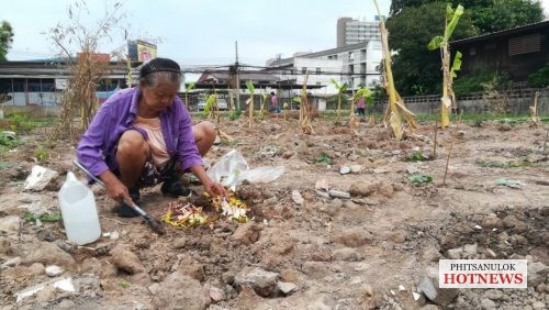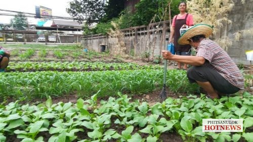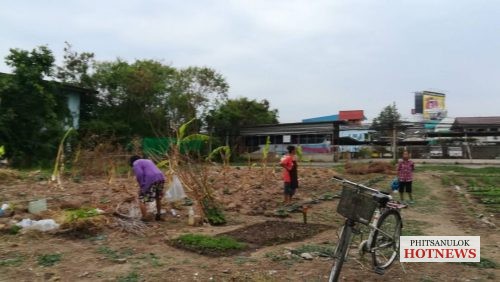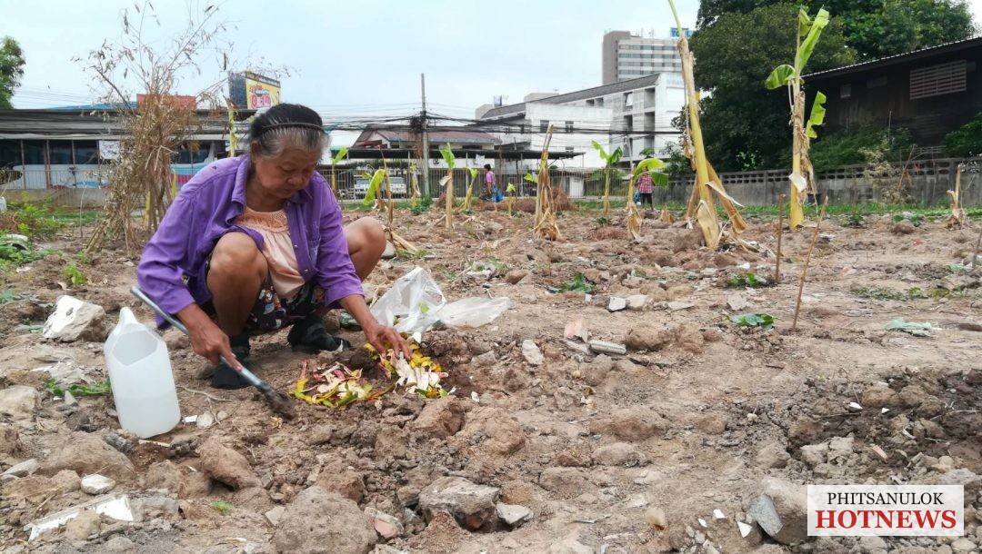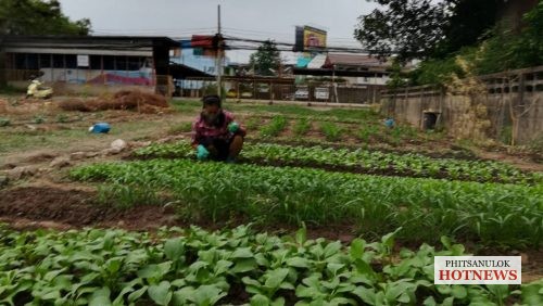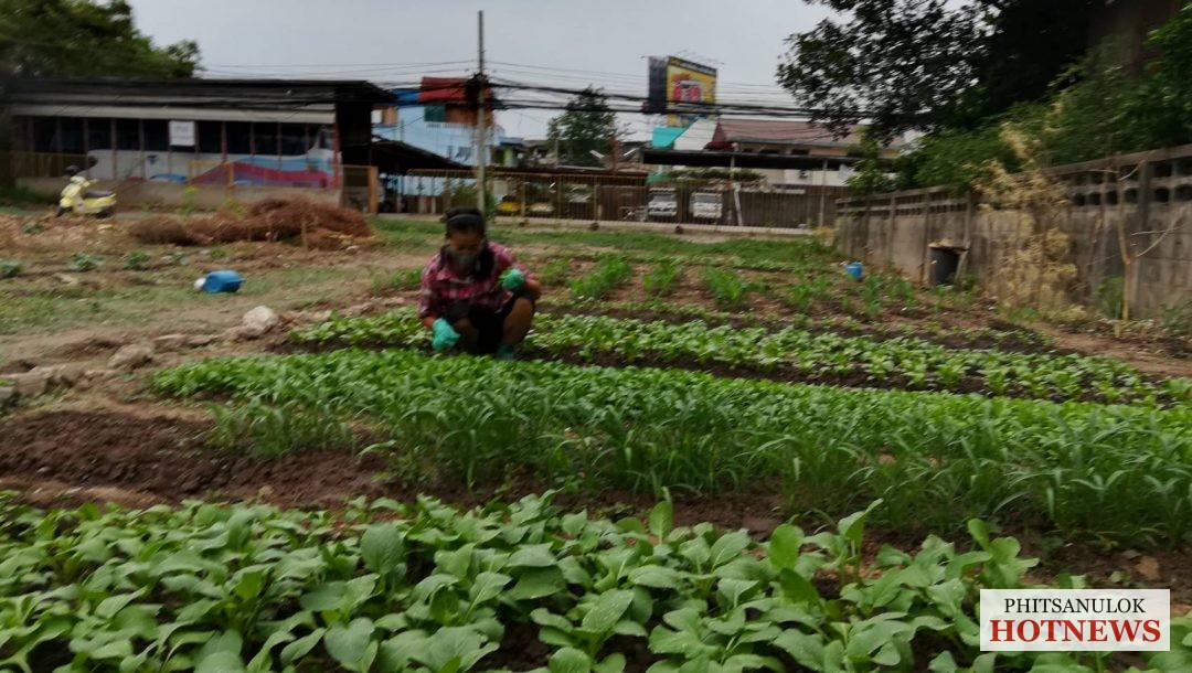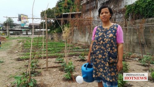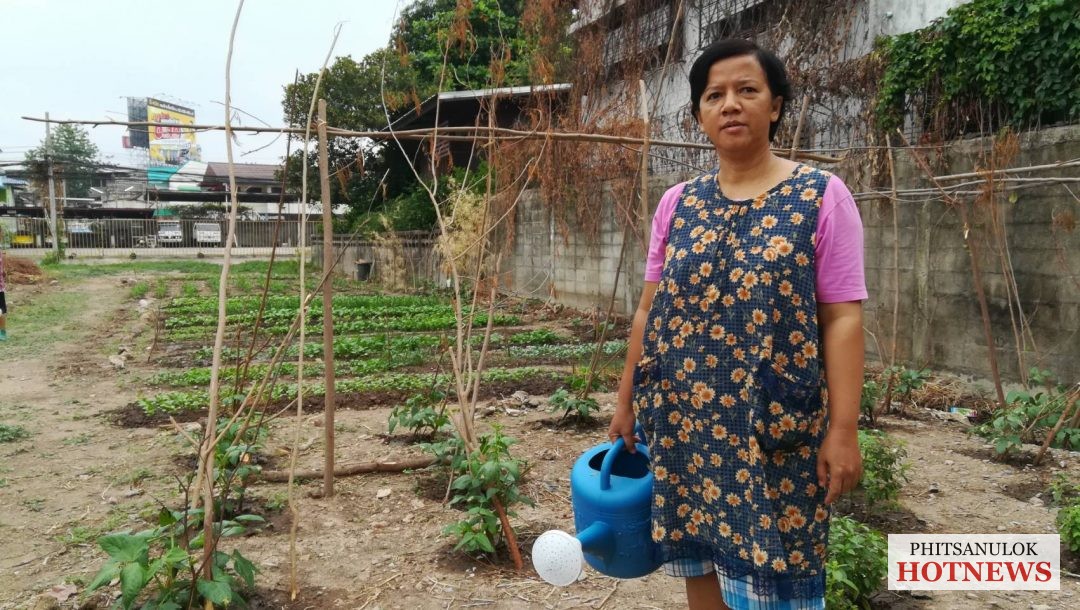 นางทองหลาง พิมพ์มา อายุ 66 ปี เช่าบ้านอยู่บริเวณนี้ ประกอบอาชีพขายของให้เด็กนักเรียนในช่วงเย็นบริเวณโรงเรียนอนุบาลพิษณุโลก เปิดเผยว่า โรงเรียนปิดเทอมยาว ตนจึงขาดรายได้ในการขายของให้นักเรียน หันมารับจ้างแกะหอม แกะกระเทียม ส่งตลาด ก็เริ่มมีผลกระทบคนซื้อน้อยลง เงินรายได้ก็ลดลง ดีใจมากที่เจ้าของที่ให้มาปลูกพืชผักสวนครัวได้ จะได้ลดรายจ่ายในครัวเรือนได้ส่วนหนึ่ง