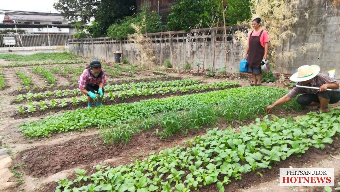 23 เมษายน 2563 ทุกเช้าและเย็น ชาวบ้านชุมชนประสงค์ประสาท 9 ครอบครัว ถนนพระองค์ดำ อ.เมือง จ.พิษณุโลก จะเข้ามารดน้ำพรวนดิน แปลงปลูกพืชผักสวนครัวของตนเอง ที่ปรับสภาพพื้นที่รกร้างว่างเปล่าเนื้อที่ประมาณ 1 ไร่เศษ มาเป็นแปลงปลูกพืชผักสวนครัว สารพัดชนิด ที่ล้วนเป็นพืชระยะสั้น เพาะปลูกง่าย และไม่ต้องใช้สารเคมีใด ๆ ต่างมาร่วมกันปลูกพืชผักบริเวณใกล้บ้านนี้เป็นระยะเวลาประมาณ 1 เดือนแล้ว หลังจากเช้าของที่ดิน เฮียชัย คนกทม. ได้โทรศัพท์แจ้งมาให้ชาวบ้านละแวกนี้ ได้ใช้ประโยชน์ที่ดินของตนเองได้ เพราะช่วงนี้ทุกคนต่างได้รับผลกระทบจากการระบาดของโควิด-19 รายได้จากการประกอบอาชีพหดหาย