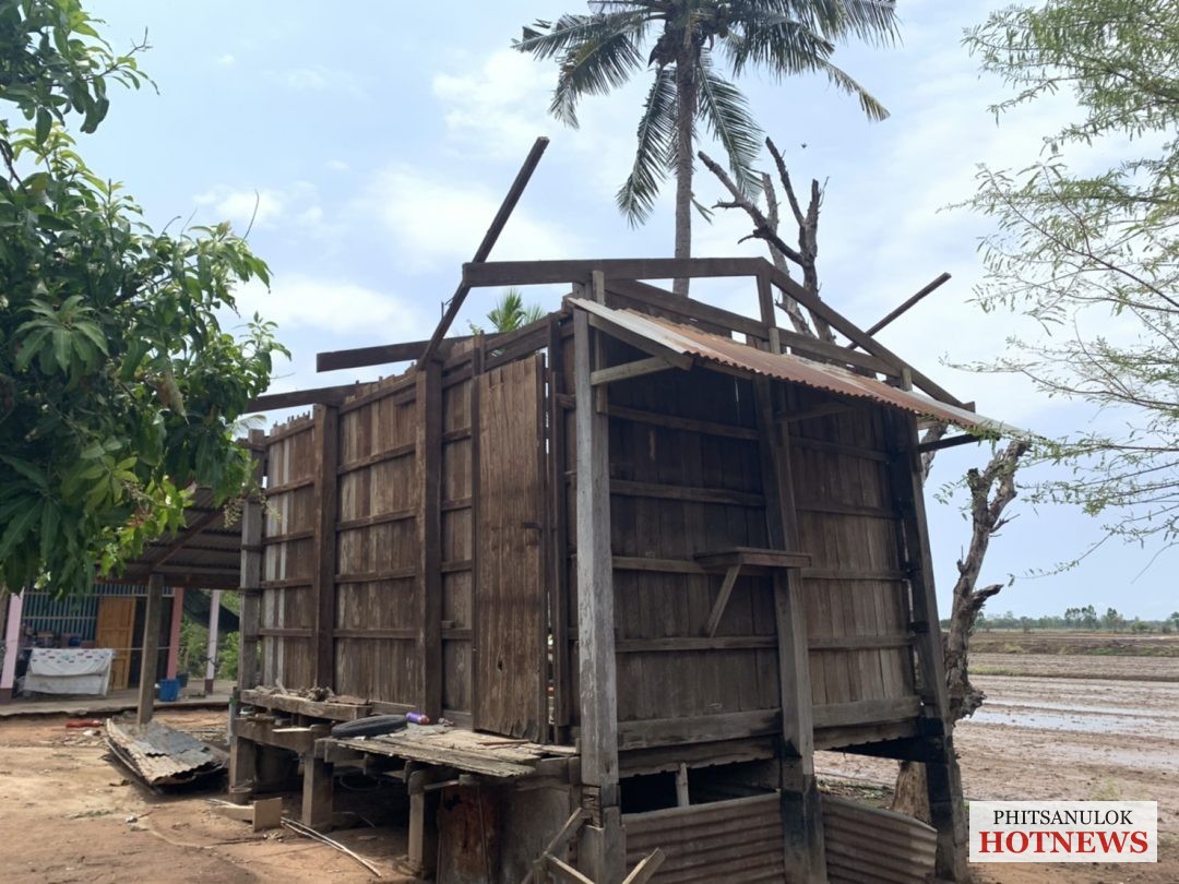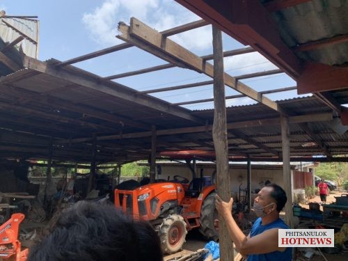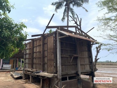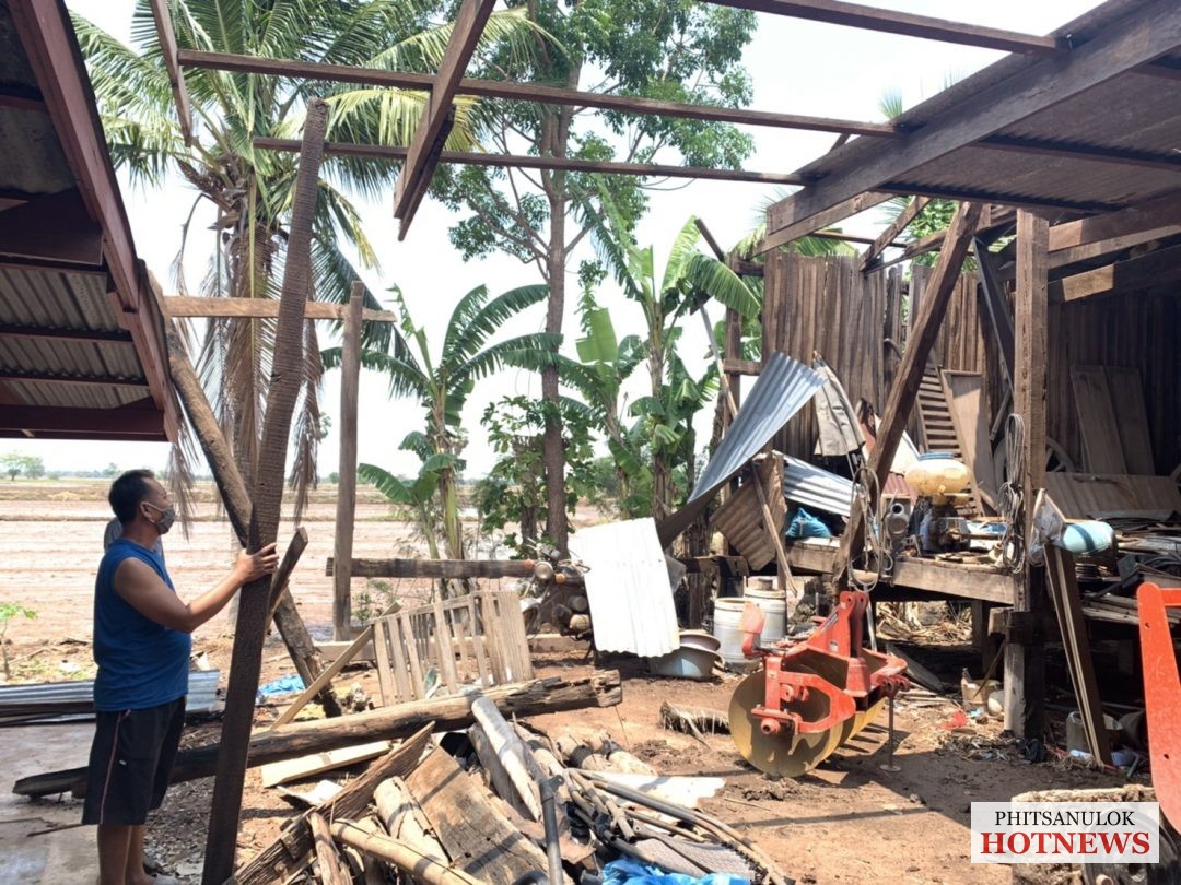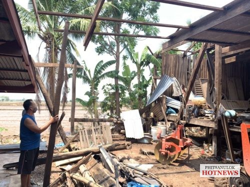 ของวันที่ 25 เม.ย. หลังจากเมื่อค่ำคืนที่ผ่านมาในหลายพื้นที่ของจังหวัดพิษณุโลก ได้เกิดฝนตกหนักและลมกรรโชกแรง ส่งผลให้บ้านเรือนประชาชนได้รับความเสียหายกันจำนวนมาก โดยเฉพาะในพื้นที่ อ.พรหมพิราม จ.พิษณุโลก มีบ้านเรือนเสียหายจากลมพายุฝนกระหน่ำหลายหลังคาเรือน ในช่วงเช้าวันนี้นายพรชัย ศิริเพิ่มพูลชัย นายกองค์การบริหารส่วนตำบลวงฆ้อง อ.พรหมพิราม จ.พิษณุโลก นำคณะผู้บริหารและสมาชิกสภาองค์การบริหารส่วนตำบลวังฆ้อง หัวหน้างานป้องกัน และบรรเทาสาธารณภัย ลงพื้นที่ช่วยเหลือประชาชน ที่ได้รับความเดือดร้อน จากฤทธิ์พายุพัดถล่มบ้านเรือนพังเสียหาย ที่บริเวณหมู่ที่ 3 บ้านวงฆ้อง จำนวน 2 หลังคาเรือน หมู่ 4 บ้านย่านยาว 2 หลังคาเรือน และหมู่ 9 บ้านวังมะด่าน 5 หลังคาเรือน โดย บ้านส่วนใหญ่ เป็นลักษณะครึ่งปูนครึ่งไม้หลังคาถูกแรงลมพัดปลิวเสียหาย บางพื้นที่หนักสุดสังกะสีปลิวไปตัดสายไฟแรงสูงขาด ไฟฟ้าดับทั้งหมู่บ้านทางการไฟฟ้าต้อง ระดมกำลัง จนท.อย่างเร่ง เข้าแก้ไขตัดกระแสไฟฟ้า เพื่อป้องกันอันตราย