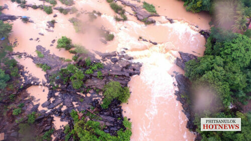 เมื่อเวลา 14.00 น. ของวันที่ 18 มิ.ย. ผู้สื่อข่าวรายงานว่า ตลอดทั้งวัน ได้เกิดฝนตกหนัก ทำให้เกิดน้ำหลากจากเทือกเขาเพชรบูรณ์ หลากลงสู่ลำน้ำเข็ก ซึ่งเป็นต้นน้ำของแม่น้ำวังทอง ทำให้ปริมาณน้ำสูงขึ้นและไหลแรงเชี่ยวกราก สีน้ำเป็นสีน้ำตาลขุ่นตลอดทั้งสายน้ำ โดยระดับน้ำที่สูงที่สุดในช่วงที่ฝนตก ในช่วงเวลา 04.00 น.ที่ผ่านมาระดับน้ำสูง ถึง 3.95 เมตร มวลน้ำไหล 37.25 ลูกบาศก์เมตรต่อวินาที จนกระทั่งเวลา 14.00 น.ที่ผ่านมา ระดับน้ำอยู่ 3.51 เมตร มวลน้ำไหล 32.09 ลูกบาศก์เมตรต่อวินาที
