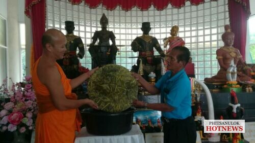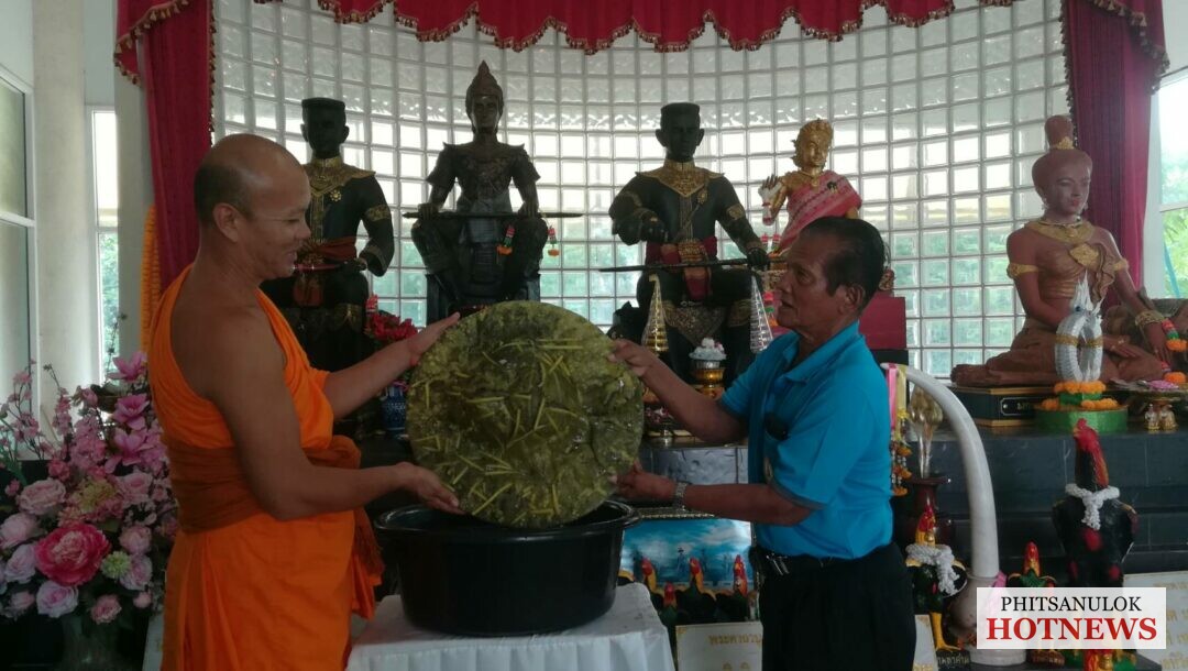 พระบุญมี สนฺตวาโจ ผู้ดูแลพุทธมณฑลเฉลิมพระเกียรติพิษณุโลก เปิดเผยว่า ตั้งแต่จัดงานเทศมาชาติที่พุทธมณฑลมาต่อเนื่อง 3 ปี และไปร่วมพิธีตามวัดต่าง ๆ ตนไม่เคยพบเห็นเทียนน้ำมนต์จะปรากฏรูปร่างออกมาเป็นพระมาลาเบี่ยงมาก่อนเลย จึงนำไปตั้งถวายไว้หน้าพระบรมรูปสมเด็จพระนเรศวรมหาราช เพราะที่ผ่าน ๆ มา สิ่งที่ประชาชนนิยมนำมาถวายมากที่สุดคือรูปปั้นไก่ชน ขณะนี้กำลังทำตู้กระจกใส สำหรับใส่เทียนน้ำมนต์ชิ้นนี้