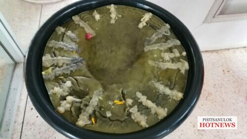 พระบุญมี เผยต่อว่า พุทธมณฑลเฉลิมพระเกียรติพิษณุโลก เป็นสถานที่จัดงานพิธีในวันสำคัญทางพระพุทธศาสนามาอย่างต่อเนื่อง วันที่ 28 สิงหาคม 2563 เป็นการเทศน์คาถาพัน มีประชาชนมาร่วมพิธีประมาณ 100 คน ในพิธีมีพระสงฆ์ 2 รูป และระหว่างการเทศน์คาถาพัน ได้จุดเทียน 1,000 เล่ม รูป 1,000 ดอก ดอกไม้ 1,000 ดอก จากนั้น วันที่ 29 สิงหาคม 2563 มีพิธีเทศน์มหาชาติ ในพิธีมีพระสงฆ์ 2 รูป ประชาชนร่วมงาน 100 กว่าคน และในโอ่งน้ำมนต์เดิม ไก้จุดเทียนส่องธรรมเพิ่มอีก 1 เล่ม และจุดเทียนบริวารอีก 21 เล่ม หลังจากเสร็จพิธีได้ให้ประชาชนนำขวดน้ำมาเก็บน้ำมนต์กลับไปได้ วันรุ่งขึ้นจึงมาสังเกตพบว่าเทียนในพิธีทั้งสองวัน ปรากฏเป็นรูปร่างคล้ายพระมาลาเบี่ยง