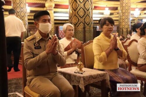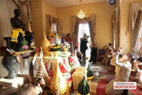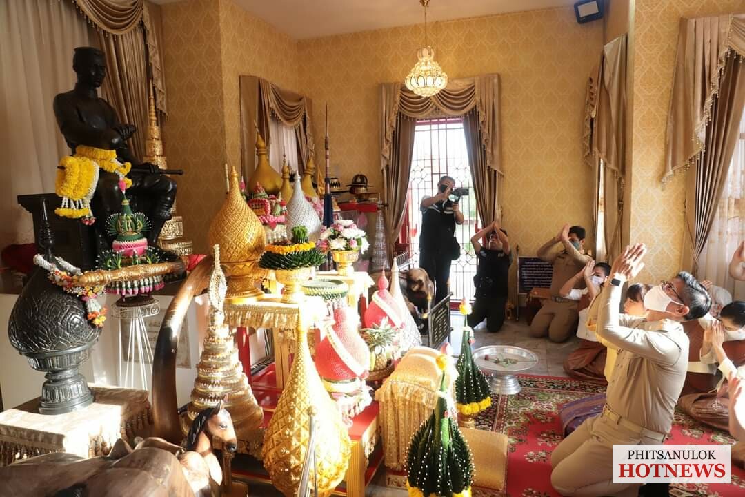จากนั้นเข้าสักการะ ศาลหลักเมือง ผูกผ้าแพ 3 สี ถวายพวงมาลัย ปิดแผ่นทอง ก่อนเดินทางไปยังตำหนัก สมเด็จพระนเรศวรมหาราช พระราชวังจันทน์ เพื่อกราบถวายบังคมสักการะ ในโอกาสเดินทางมารับตำแหน่งผู้ว่าราชการจังหวัดพิษณุโลก คนที่ 52