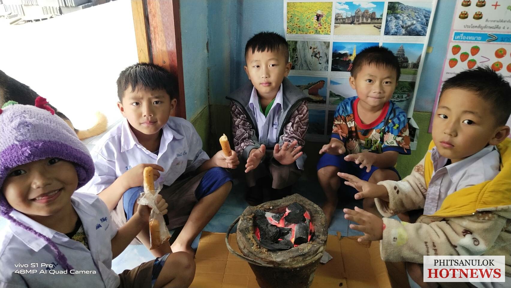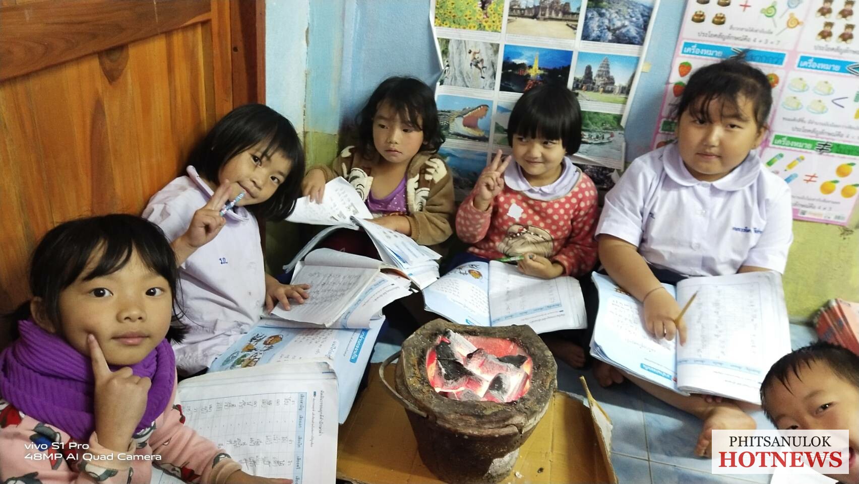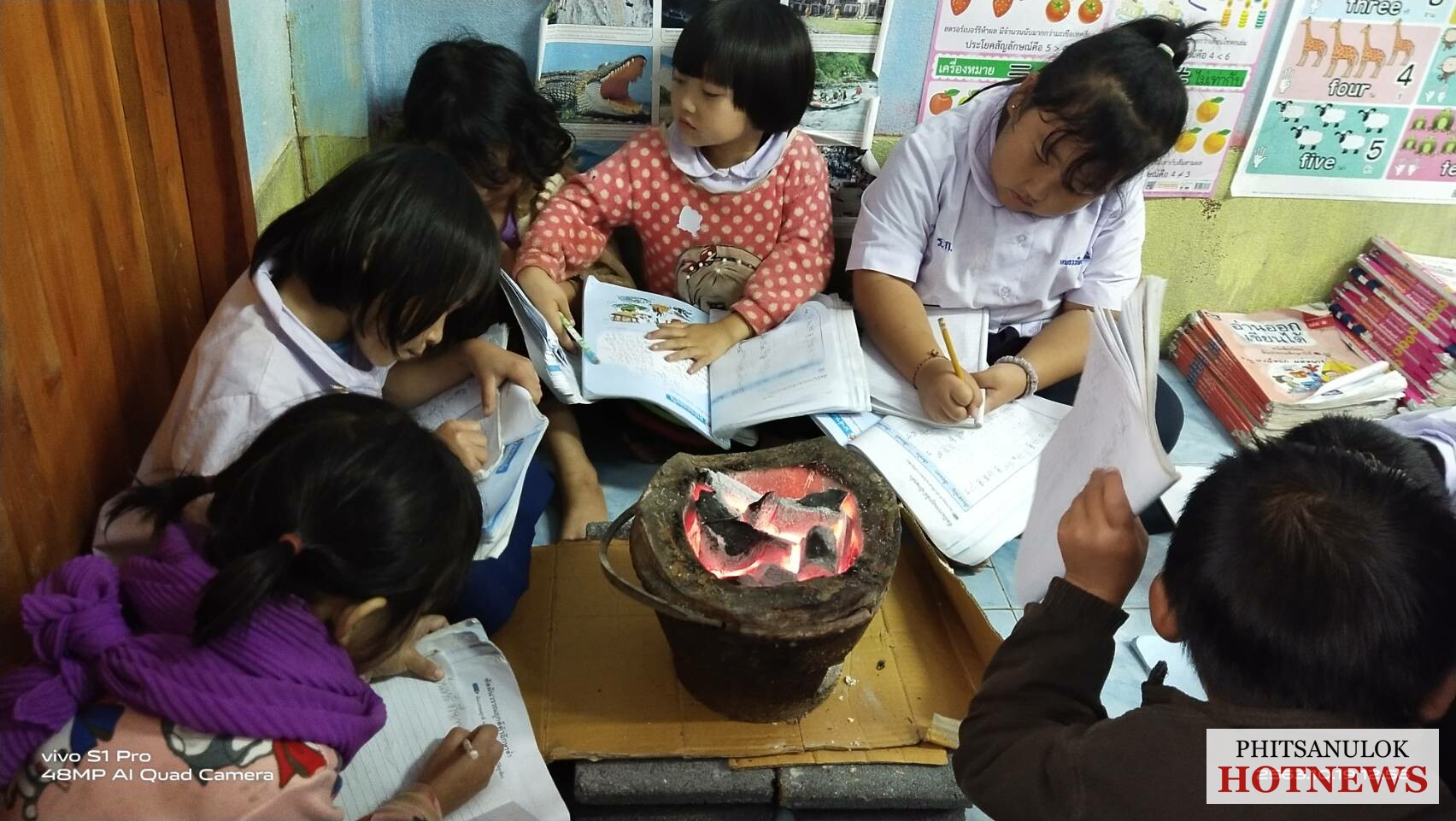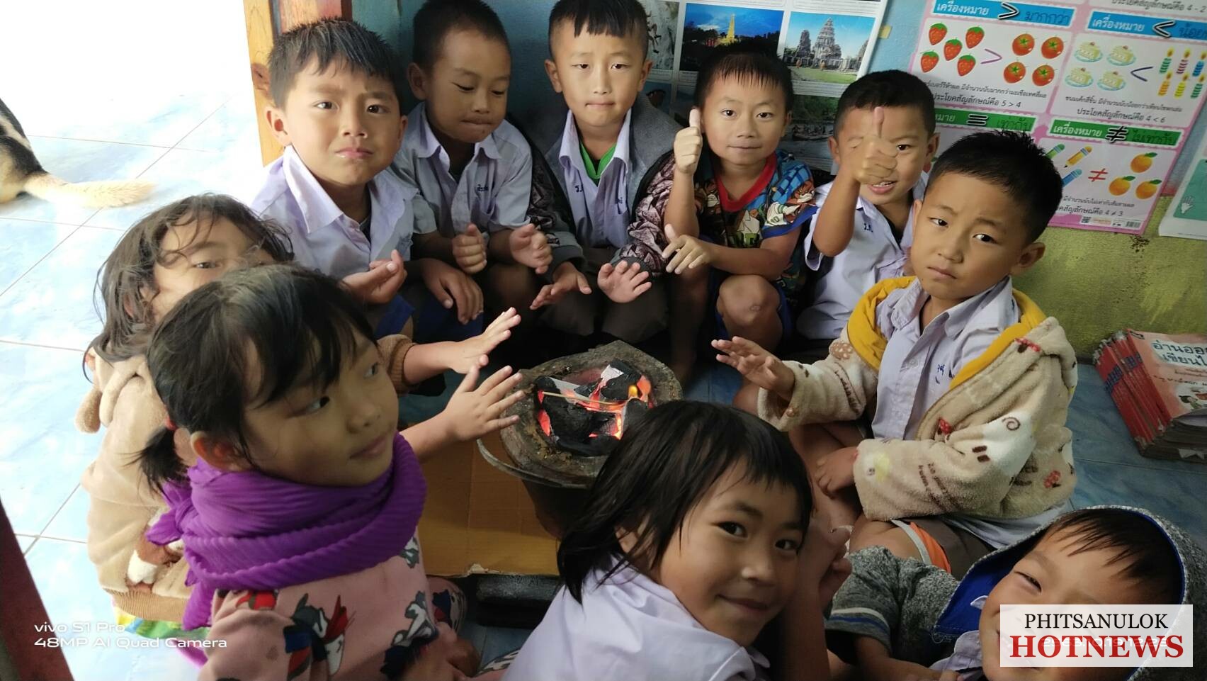 วันนี้( 19 ต.ค. )ผู้สื่อข่าวรายงานว่า หลังจากความกดอากาศสูงจากประเทศจีน ได้แผ่ลงมาปกคลุมภาคตะวันออกเฉียงเหนือและภาคเหนือตอนบน ลักษณะเช่นนี้ทำให้ประเทศไทยตอนบนมีฝนเล็กน้อย และอุณหภูมิต่ำลง ทำให้วันนี้ที่ยอดดอยของจังหวัดพิษณุโลกมีอุณหภูมิต่ำลง โดยที่บริเวณบ้านใหม่ร่องกล้า ต.เนินเพิ่ม อ.นครไทย จ.พิษณุโลก ซึ่งเป็นหมู่บ้านชาวไทยภูเขาเผ่าม้ง ใจกลางอุทยานแห่งชาติภูหินร่องกล้า ได้เริ่มมีสภาพอากาศที่หนาวเย็นและลมพัดตลอดเวลา ทำให้นักเรียนของโรงเรียนบ้านห้วยน้ำไซ (สาขาร้องกล้าวิทยา) ต้องก่อเตาไฟอั่งโล่ มาตั้งไว้กลางห้องเพื่อให้ความอบอุ่น แล้วเรียนตลอดทั้งวัน