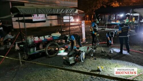 เมื่อเวลา 18.00 น.ของวันที่ 4 ธ.ค.พ.ต.ท.วสุ เพ็งที สว.สอบสวน สภ.เนินมะปราง จ.พิษณุโลก รับแจ้งว่าเกิดเหตุยิงกันที่บริเวณตลาดนัดบ้านซำรัง หมู่ 15 ต.ชมพู อ.เนินมะปราง จ.พิษณุโลก หลังรับแจ้งจึงรุดไปตรวจสอบที่เกิดเหตุ พร้อมด้วย พ.ต.อ.ชนะชัย แสงศิริ ผกก.สภ.เนินมะปราง จ.พิษณุโลก และตำรวจชุดพิสูจน์หลักฐาน ในที่เกิดเหตุเป็นตลาดนัด ชาวบ้านกำลังช่วยกันปั้มหัวใจ น.ส.ดวงจันทร์ กลิ่นกระโทก อายุ 36 ปี และนายประจวบ กลิ่นกระโทก อายุ 60 ปี พ่อลูก อยู่บ้านเลขที่ 369 หมู่ 4 ต.ชมพู อ.เนินมะปราง ที่ถูกคนร้ายยิงจนได้รับบาดเจ็บสาหัส ทั้ง 2 คน โดยนางสาวดวงจันทร์ ถูกยิงที่ท้ายทอย และซี่โครงขวา ส่วนนายประจวบ ผู้เป็นพ่อ ถูกยิงที่แขน และไหปลาร้าซ้าย ก่อนรถกู้ชีพองค์การบริหารส่วนตำบลชมพู นำส่งโรงพยาบาลเนินมะปราง ทันที ส่วนมือปืนนั้นคือ นายสุริยัน รอดบ้านยาง อายุ 40 ปี อดีตสามีของนางดวงจันทร์ หลังจากก่อเหตุได้ขัยรถจักรยานยนต์หลบหนีไป ในที่เกิดเหตุพบเศษหัวกระสุนปืน .32 ตกอยู่ในที่เกิดเหตุ จำนวน 1 ชิ้น
