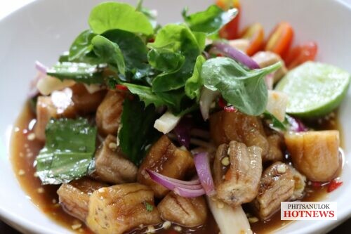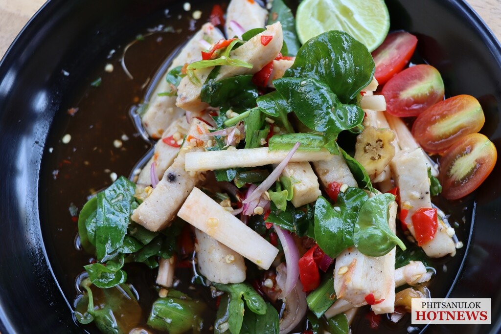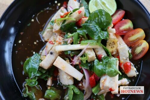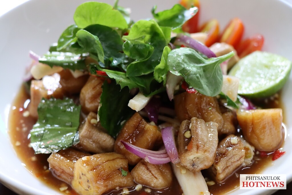 และอีกหนึ่งเมนูที่สายแซ่บจะพลาดไม่ได้ คือเมนูยำกล้วยตาก ที่ใช้กล้วยตากอบน้ำผึ้ง ของดีของ อ.บางกระทุ่ม มาเป็นตัวชูในเมนูยำ เพราะกล้วยตากเป็นเมนูกล้วยหวานๆ แต่ทางร้านสามารถนำมายำกับน้ำยำของทางร้านได้แบบลงตัว ในราคาเพียงจานละ 69 บาทเท่านั้น เป็นเมนูที่คนพิษณุโลกต้องชิม นอกจากนี้ยังมีเมนูยำอื่นๆ อีกหลากหลาย กว่า 50 เมนู โดยเฉพาะเมนูส้มตำ ที่สายแซ่บ ต้องห้ามพลาด รวมถึงเมนูอาหารจานเดียวทางร้านก็มีไว้บริการ ในราคาเริ่มต้นเพียง 49 บาทเท่านั้น นอกจากนี้ทางร้านยังมีน้ำยำรสเด็ด สูตรเฉพาะของทางร้าน ที่นำไปปรุงกับอะไรก็จะกลายเป็นเมนูยำรสเด็ด มีทั้งสูตรใส่น้ำปลาร้า และไม่ใส่น้ำปลาร้า ในราคาขวดละ 55 บาทเท่านั้น ทางร้านรับสิทธิของรัฐบาล ทั้งคนละครึ่ง เราชนะ บัตรสวัสดิการของรัฐ อีกด้วย