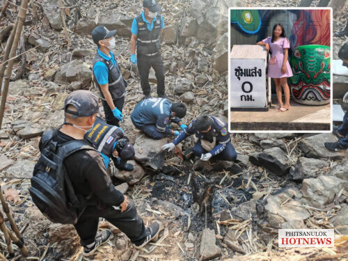 เมื่อเวลา 07.00 น วันที่ 9 มีนาคม พ.ต.ต.หญิงวิรัลพัชร วรพงศ์ปกรณ์ ส.ว.สภ.แก่งโสภา อำเภอวังทอง จังหวัดพิษณุโลก รับแจ้งพบศพผู้เสียชีวิต ถูกเผานั่งยางกลางป่าสวนยางพื้นที่หมู่ 11 บ้านม่วงหอม ต.บ้านกลาง อ.วังทอง หลังรับแจ้งจึงรุดตรวจสอบพร้อมด้วยเจ้าหน้าที่ตำรวจ ชุดสืบสวน เจ้าหน้าที่ตำรวจวิทยาการศูนย์พิสูจน์หลักฐาน 6 และเจ้าหน้าที่หน่วยกู้ภัยมูลนิธิประสาทบุญสถาน ที่เกิดเหตุเป็นสวนยางพาราในป่าลึก พบร่างผู้เสียชีวิตสภาพถูกเผานั่งยางจำนวน 3 เส้นเหลือเพียง กองกระดูก สภาพไหม้เกรียมจนจำเค้าเดิมไม่ได้