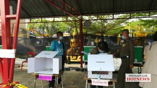ส่วนที่วัดจันทร์ตะวันตกสถานที่ลงคะแนนเสียงเลือกตั้งนายกเทศมนตรีนครพิษณุโลก ในภาคเช้าก็มีประชาชนออกมาใช้สิทธิ์ จำนวนมากพอสมควรเจ้าหน้าที่ได้คงเข้มมาตรการป้องกัน covid 19 รายการตรวจวัดอุณหภูมิสวมหน้ากากอนามัยล้างมือด้วยเจลแอลกอฮอล์สำหรับผู้มาใช้สิทธิ์เลือกตั้งทุกคน