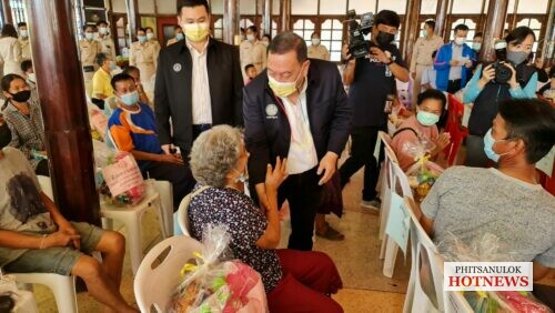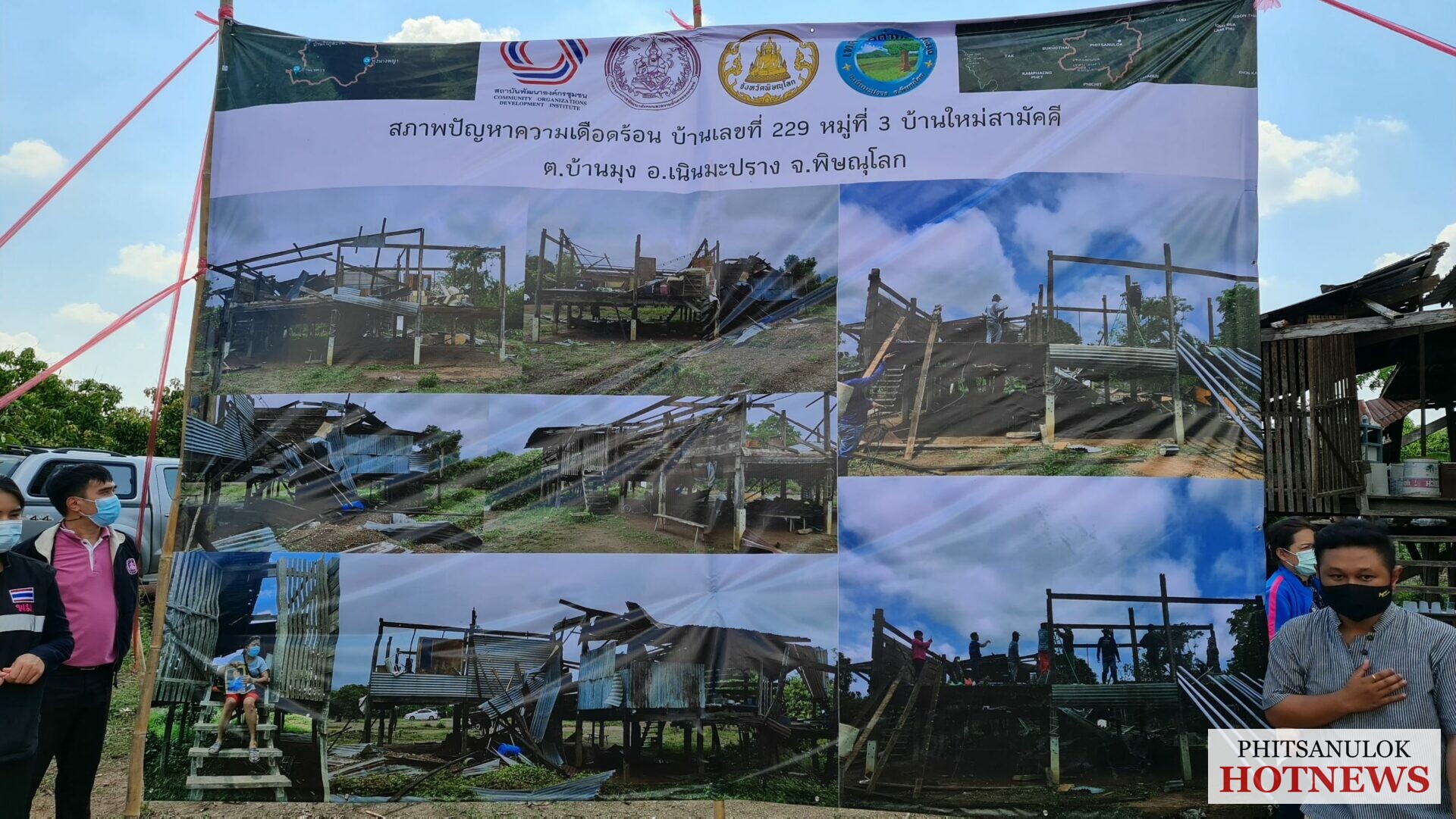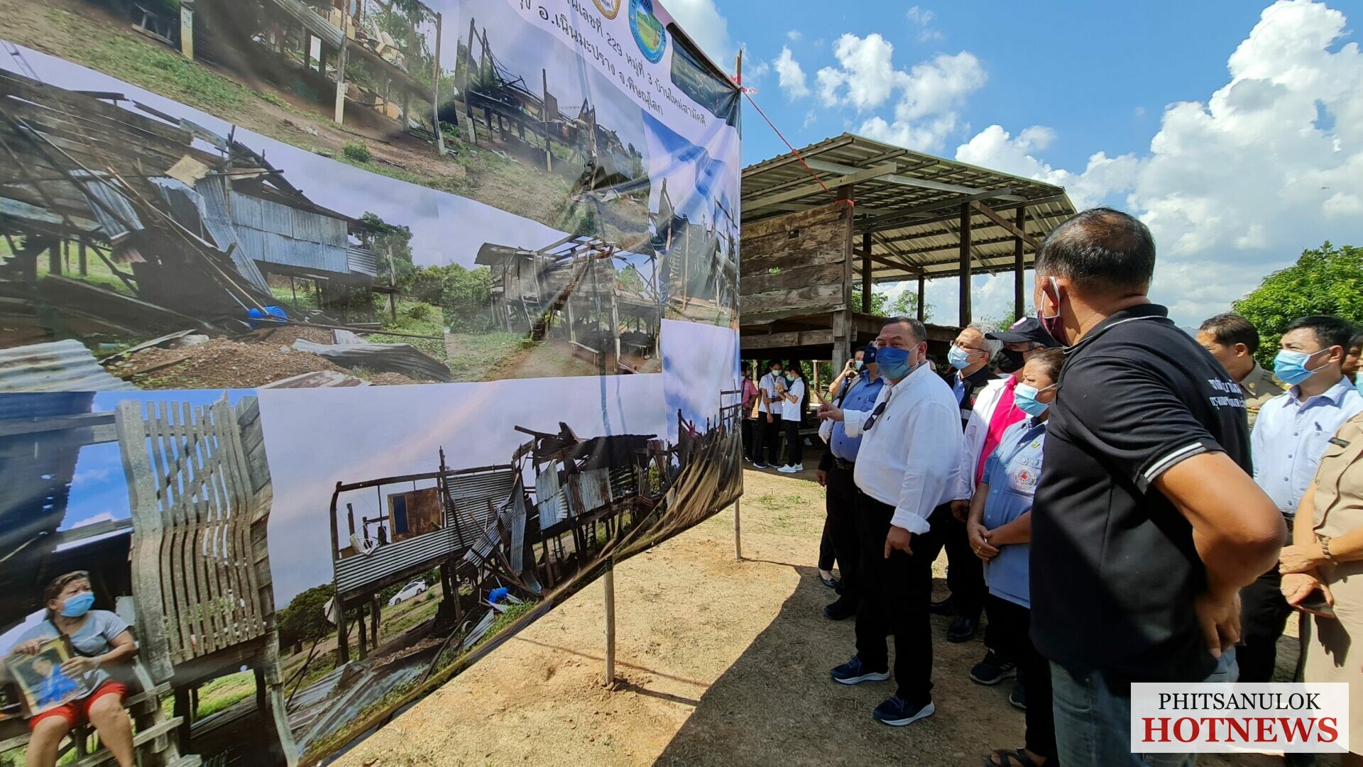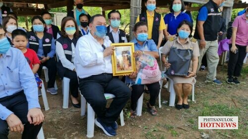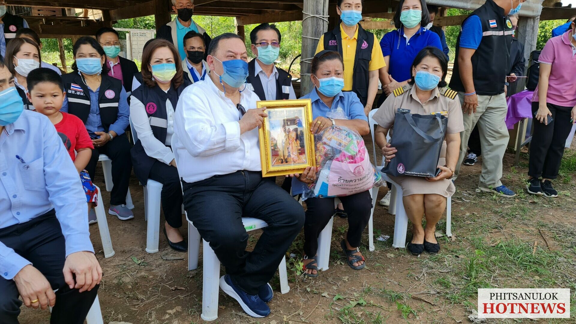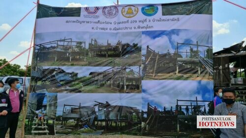 โอกาสนี้รัฐมนตรีว่าการกระทรวงพัฒนาสังคมและความมั่นคงของมนุษย์ และคณะ ได้พบปะเยี่ยมเยียนพร้อมมอบถุงยังชีพ และพระบรมฉายาลักษณ์ แก่ครอบครัวนายมงคล คงบาง ที่บ้านเลขที่ 8/1 ม.10 บ้านหนองกะท้าว ซึ่งบ้านได้รับความเสียหายจากแรงพายุพัดหลังคาบ้านเสียหาย และมีสมาชิกในบ้านเป็นผู้ป่วยติดเตียงมานาน 30 ปี นอกจากนี้ยังไปเยี่ยมบ้านนางสะท้อน สีพลมาด บ้านเลขที่ 42 ม.10 ต.หนองกะท้าว สภาพที่อยู่อาศัยบ้านไม้ชั้นเดียวยกสูง ไม่มั่นคงถาวร ถูกแรงพายุพัดฝาพนังบ้านด้านหลังเสียหาย และคานกลางบ้านหักไม่สามารถรับน้ำหนักผู้อาศัยได้มาก โดยก่อนหน้านี้ ทางอำเภอนครไทยและองค์กรปกครองส่วนท้องถิ่น ได้มอบเงินช่วยเหลือผู้ประสบวาตภัยตามระเบียบราชการเบื้องต้นไปแล้ว และเตรียมซ่อมแซมที่อยู่อาศัยให้แก่ผู้ประสบภัย