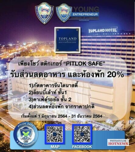 นายปกรณ์ ด่านสีทอง ประธานหอการค้าจังหวัดพิษณุโลก กล่าวว่า โครงการ “WE SAFE” เป็นโครงการที่มีวัตถุประสงค์เพื่อช่วยกระตุ้นเศรษฐกิจท้องถิ่นในจังหวัดภาคเหนือตอนล่าง (พิษณุโลก ตาก อุตรดิตถ์ พิจิตร กำแพงเพชร สุโขทัย เพชรบูรณ์ และนครสวรรค์ ) รวมทั้งจะช่วยสร้างความมั่นใจให้ประชาชนจังหวัดภาคเหนือตอนล่าง ในการได้รับวัคซีนป้องกันโควิด 19 อีกด้วย โครงการ “PITLOK SAFE ” จึงสานต่อจากโครงการดังกล่าวข้างต้น นำเสนอโปรโมชั่นส่งเสริมการขายจากร้านค้าต่างๆ ที่เข้าร่วมกับโครงการ เพื่ออำนวยความสะดวกและก่อให้เกิดการกระตุ้นเศรษฐกิจในจังหวัดพิษณุโลก โดยผู้บริโภคที่มีคุณสมบัติได้รับโปรโมชั่นจากร้านค้าต่างๆ นั้น ต้องเป็นคนที่ได้รับวัคซีนป้องกันโควิด 19 แล้วไม่น้อยกว่า 1 ครั้ง ซึ่งไม่จำกัดยี่ห้อวัคซีนและสถานที่ที่ได้รับวัคซีน ผู้ที่ประสงค์จะรับโปรโมชั่นจากร้านค้าต่างๆ ในโครงการ จำเป็นต้องแสดงหลักฐานการได้รับวัคซีนให้ผู้ประกอบการก่อนรับบริการ ไม่ว่าจะเป็น 1. ใบนัดการรับวัคซีนเข็มแรก หรือ เข็มที่ 2 2. มีสติ๊กเกอร์ ในเครือ โครงการ WE SAFE โครงการ “PITLOK SAFE” ดำเนินการโดยหอการค้าจังหวัดพิษณุโลก และ ผู้ประกอบการรุ่นใหม่ YEC จังหวัดพิษณุโลก เป็นโครงการที่มุ่งช่วยเหลือผู้ประกอบการ และประชาชนจังหวัดพิษณุโลก และในเครือโครงการ ในฐานะผู้บริโภค โครงการนี้เป็นกิจกรรมที่ไม่แสวงหาผลกำไรแต่อย่างใด ระยะเวลาการจัดกิจกรรม ตั้งแต่วันที่1 มิถุนายน 2564 – 31 ธันวาคม 2564 สำหรับร้านค้าที่สนใจเข้าร่วมโครงการ กรุณาติดต่อทางกล่องข้อความของ Facebook หอการค้าจังหวัดพิษณุโลก หรือ YEC Phitsanulok Line : @406nbznp