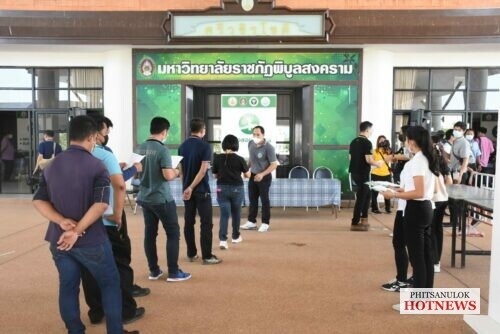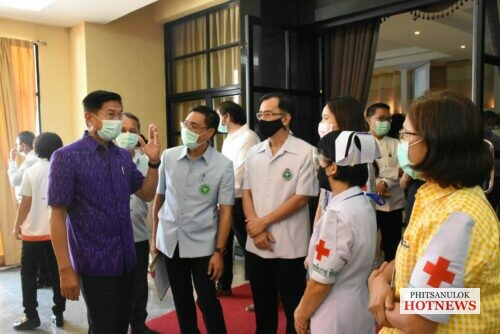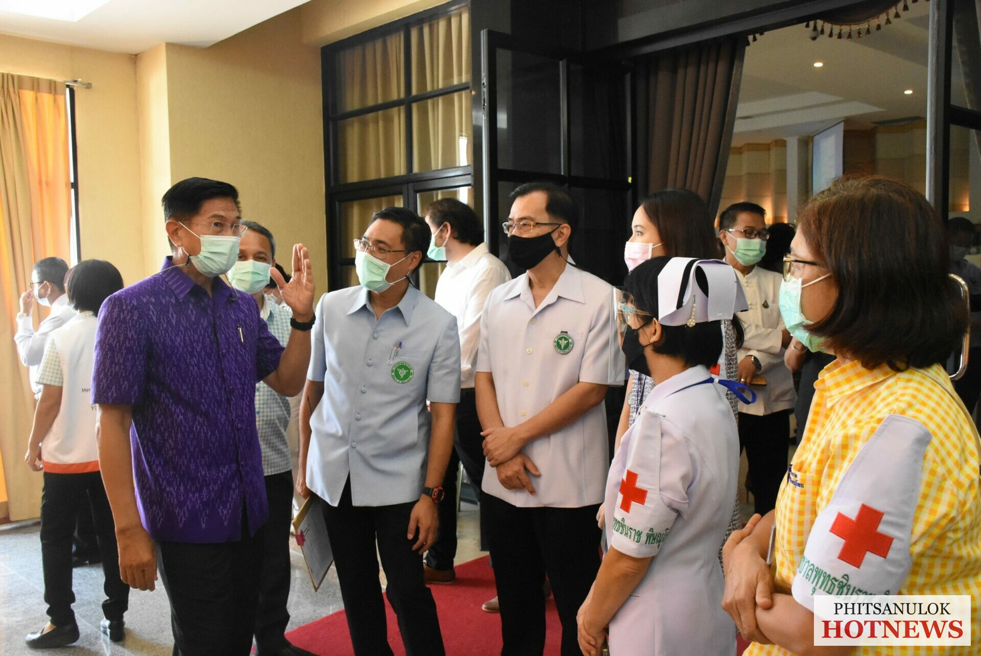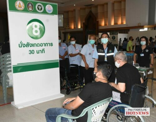 วันที่ 4 มิถุนายน 2564 นายรณชัย จิตรวิเศษ ผู้ว่าราชการจังหวัดพิษณุโลก พร้อมคณะกรรมการโรคติดต่อจังหวัดพิษณุโลก ได้ตรวจเยี่ยมสถานที่ฉีดวัคซีนโควิด-19 นอกโรงพยาบาล ณ หอประชุมศรีวชิรโชติ มหาวิทยาลัยราชภัฎพิบูลสงคราม(ส่วนทะเลแก้ว) ซึ่งเป็น 1 ใน 12 แห่ง ของจังหวัดพิษณุโลก ที่จะให้บริการฉีดวัคซีนพร้อมกันในวันที่ 7 มิถุนายน นี้ ตั้งแต่เวลา 08.00-16.00 น. โดยกลุ่มเป้าหมายผู้สูงอายุ 60 ปีขึ้นไปและกลุ่มผู้ป่วย 7 โรคเรื้อรัง จำนวน 5,802 คน กระจายไปทั้ง 9 อำเภอ ที่ผ่านการลงทะเบียนในระบบหมอพร้อม เป็นที่เรียบร้อยแล้วสำหรับจุดบริการฉีดวัคซีน แห่งนี้ มี รพ.พุทธชินราช เป็นหน่วยรับผิดชอบ ซึ่งได้เตรียมความพร้อมบุคลาการด้านการแพทย์ พยาบาล อสม.และจิตอาสา จำนวน กว่า 250 คน เพื่อรองรับการฉีดวัคซีน ใน 8 ขั้นตอนสำหรับคนทั่วไป ส่วนในรายที่ไม่สามารถช่วยเหลือตัวเองได้จะใช้ One Stop Service เพื่อให้สะดวกที่สุด