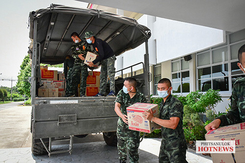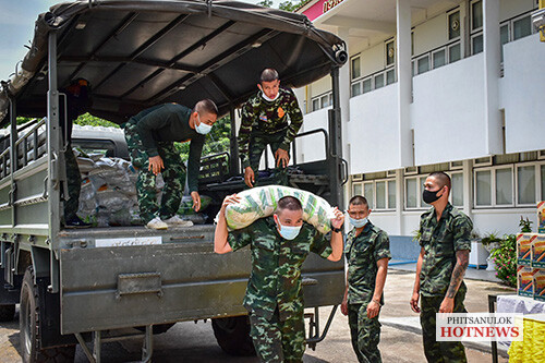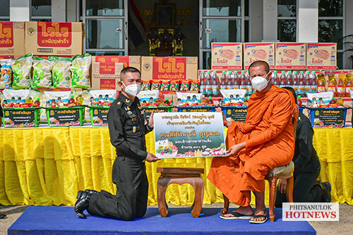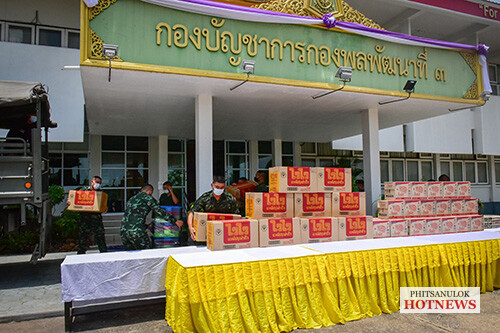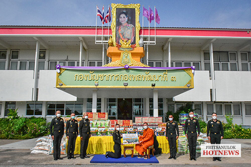 เมื่อวันที่ 4 มิ.ย.64 ผู้สื่อข่าวรายงานว่า ที่หน้ากองบัญชาการกองพลพัฒนาที่ 3 ค่ายสมเด็จพระบรมไตรโลกนาถ อ.วังทอง จ.พิษณุโลก พล.ต.ทวีศักดิ์ วงศ์ทวีทรัพย์ ผู้บัญชาการ กองพลพัฒนาที่ 3 รับมอบข้าวสารถุงละ 5 กิโลกรัม บะหมี่กึ่งสำเร็จรูป น้ำมันพืช น้ำปลา ไข่ไก่ รวมทั้งหมด จำนวน 300 ชุด จากพระครูปลัด วัชรัศน์ บุตสี เจ้าอาวาสวัดศรีเจริญโพธิ์ทอง ต.ดอนทอง อ.เมือง จ.พิษณุโลก พร้อมด้วยคุณ สิฬิฬินณนี บุนนาค ได้นำมาให้การสนับสนุน เพื่อนำจัดบรรจุลงในตะกร้าปันสุข ที่จะนำไปมอบให้กับผู้ป่วยติดเตียง และผู้ที่ได้รับผลกระทบจากสถานการณ์โควิด ในพื้นที่ จำนวน 300 ครอบครัวพร้อมทั้ง ได้มอบเงินสนับสนุนอีกจำนวนหนึ่ง ที่จะนำไปทำโครงการเพาะเห็ดและเลี้ยงปลา ตามโครงการ ” ตู้กับข้าวข้างบ้าน” ให้กับ พล.พัฒนา 3 เพื่อให้ทหารพันธุ์ดีนำไปดำเนินการขยายผลสู่ชุมชนรอบค่าย เป็นการช่วยเหลือประชาชน ให้มีความเป็นอยู่ที่ดี