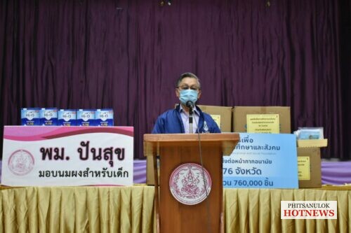 ซึ่งในวันนี้จะมีการลงพื้นที่จำนวน 6 จังหวัด ได้แก่ จังหวัดพิษณุโลก จังหวัดพิจิตร อำเภอสามพัน จังหวัดเพชรบูรณ์ จังหวัดลพบุรี อำเภอพรหมบุรี จังหวัดสิงห์บุรี และ จังหวัดอ่างทอง โดยที่จังหวัดพิษณุโลก ได้รับหน้ากากอนามัยที่จะนำไปมอบให้กับกลุ่มเบาะบาง จำนวน 10,000 ชิ้น
