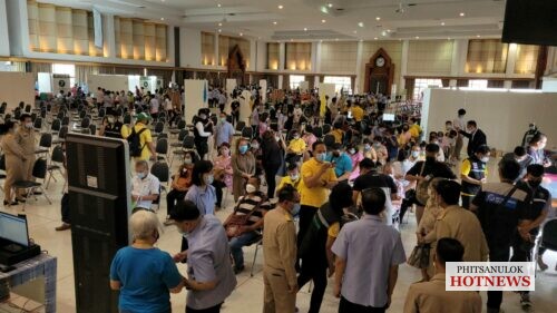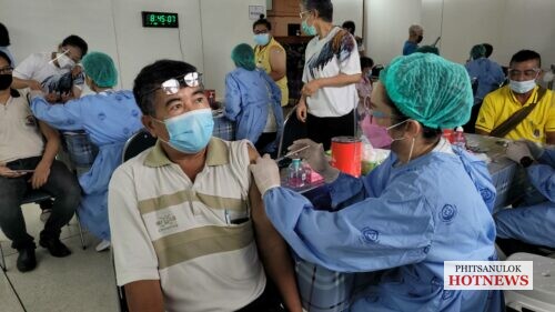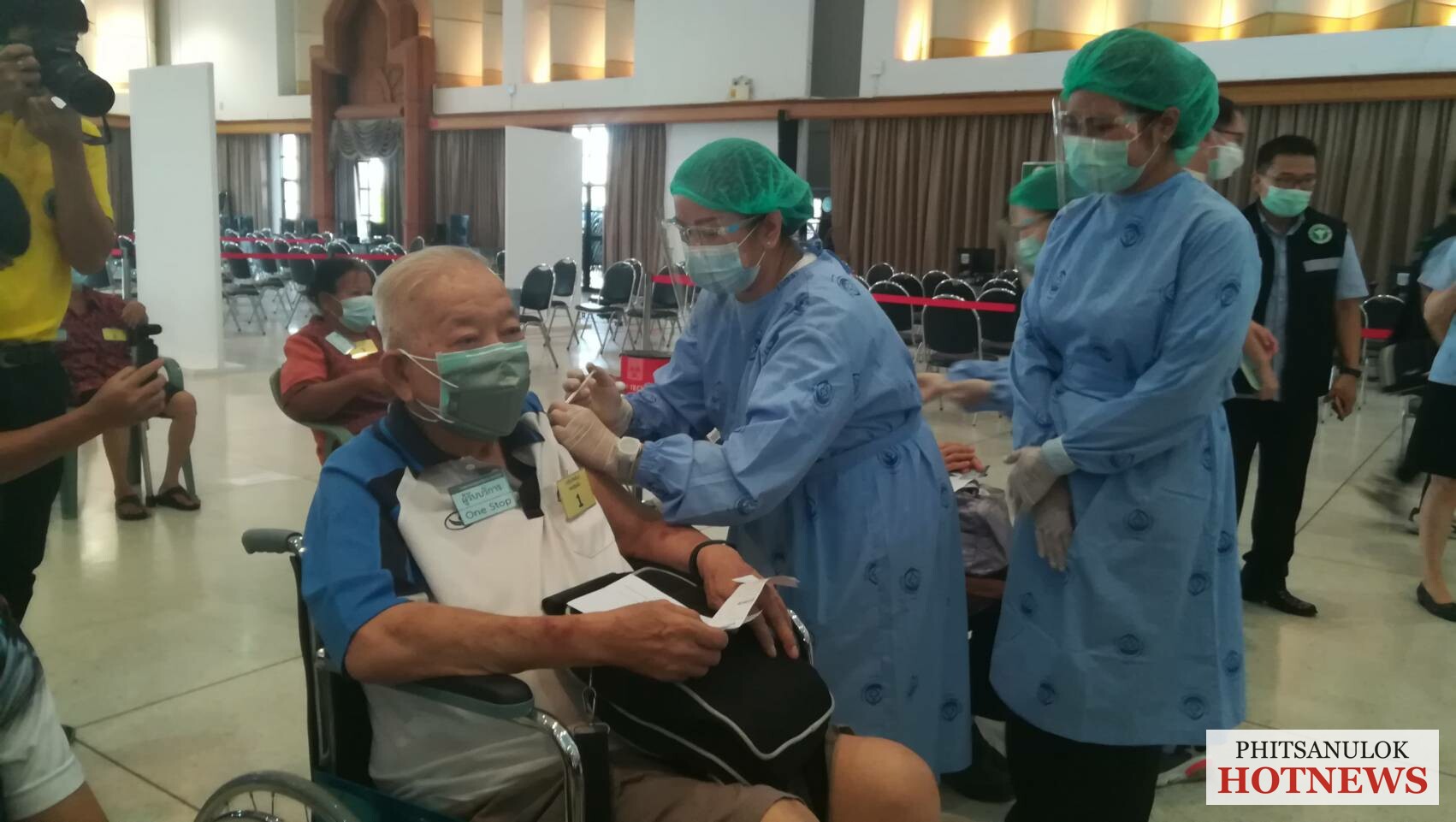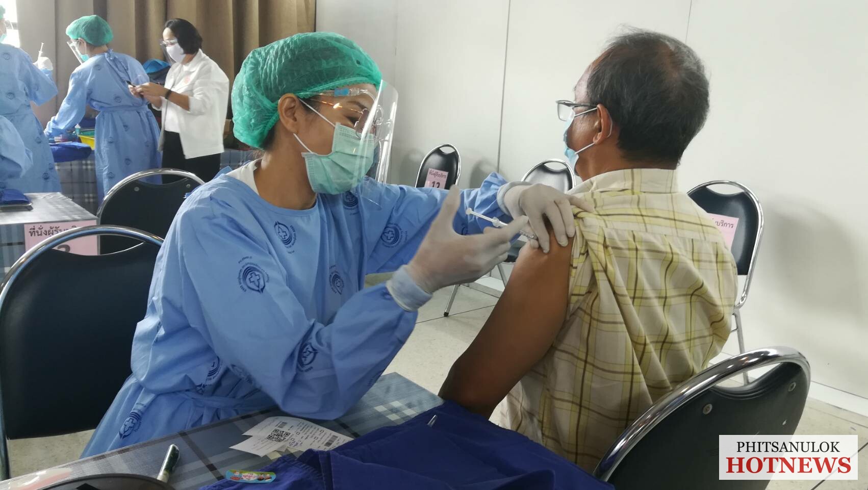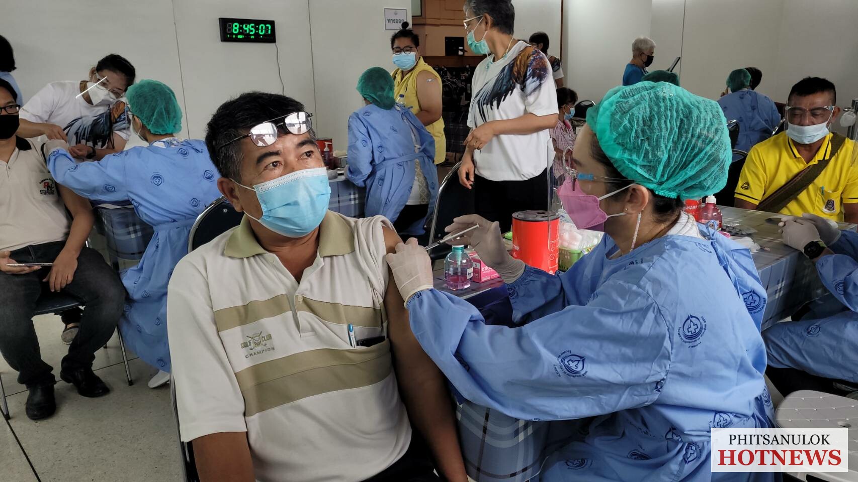 เวลา 08.30 น. 7 มิถุนายน 2564 ที่หอประชุมศรีวชิรโชติ มหาวิทยาลันราชภัฏพิบูลสงคราม อ.เมือง จ.พิษณุโลก สถานที่ฉีดวัคซีนโควิด-19 ของอำเภอเมือง บรรยากาศการฉีดวัคซีนวันแรกเป็นไปอย่างคึกคัก ชาวพิษณุโลกกลุ่มผู้เสี่ยงอายุและกลุ่มเสี่ยงที่ลงทะเบียนผ่านแอปหมอพร้อมได้เดินทางมารอฉีดวัคซีนตั้งแต่เช้า คนแรก ๆ ที่มารอมาตั้งแต่เวลา 06.00 น. จากกำหนดเริ่มฉีดวัคซีน 08.30 น. ส่วนอำเภอต่าง ๆ อีก 8 อำเภอ โรงพยาบาลชุมชนประจำอำเภอเป็นผู้ดำเนินการฉีดวัคซีนให้ประชาชน โดยกำหนดสถานที่ฉีดวัคซีน ณ ศูนย์ประสานแผนประจำอำเภอ