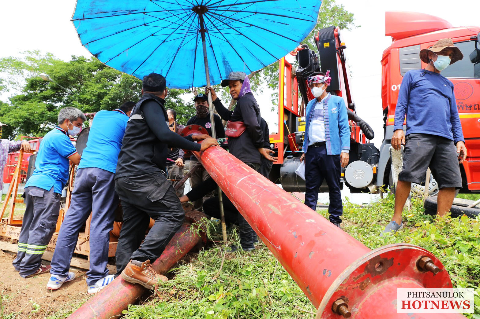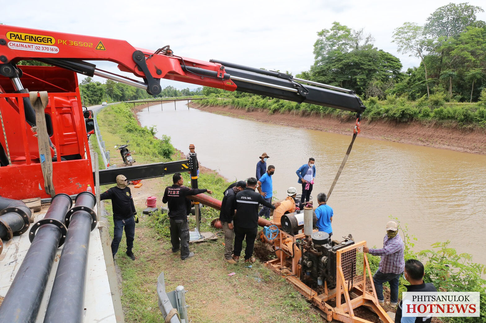 วันที่ 11 มิถุนายน 2564 ว่าที่ร้อยตรี อิทธิพล บุบผะศิริ รองนายกองค์การบริหารส่วนจังหวัดพิษณุโลก ได้รับมอบหมายจาก นายมนต์ชัย วิวัฒน์ธนาฒย์ นายกองค์การบริหารส่วนจังหวัดพิษณุโลก ให้นำเจ้าหน้าที่ฝ่ายป้องกันและบรรเทาสาธารณภัย สำนักปลัด องค์การบริหารส่วนจังหวัดพิษณุโลก เข้าดำเนินการติดตั้งเครื่องสูบน้ำจำนวน 1 เครื่อง ซึ่งได้รับการสนับสนุนจากองค์การบริหารส่วนตำบลท่าโพธิ์ อำเภอเมืองพิษณุโลก เพื่อนำไปติดตั้งที่บริเวณริมคลองชลประทานหมู่ที่ 2 บ้านดงสมอ ตำบลหนองแขม อำเภอพรหมพิราม จังหวัดพิษณุโลก เพื่อสูบน้ำจากคลองส่งน้ำ C1 เข้าสู่คลองแยก C1B เพื่อส่งไปให้เกษตรกรที่เพาะปลูกนาข้าวไว้ก่อนหน้านี้จำนวนเกือบ 1,000 ไร่ ซึ่งเกษตรกรได้ทำการเพาะปลูกข้าวมีอายุตั้งแต่ 20 วัน ถึง 1 เดือน และบางรายข้าวกำลังตั้งท้องแต่มาขาดน้ำเกือบจะยืนต้นตาย จนต้องนำเครื่องสูบน้ำไปติดตั้งเพื่อสูบน้ำเข้านาข้าวของตนเอง เบื้องต้นเจ้าหน้าที่ได้เร่งดำเนินการติดตั้งเครื่องสูบน้ำเพื่อบรรเทาความเดือดร้อนให้เกษตรกรในตำบลหนองแขม พร้อมทั้งได้ประสานขอเครื่องสูบน้ำเพิ่มเติมจากสำนักชลประทานที่ 3 อีกจำนวน 7 เครื่อง เพื่อสูบน้ำให้แก่เกษตรกรในพื้นที่ตำบลพรหมพิราม 4 เครื่อง และพื้นที่ตำบลหนองแขม 3 เครื่อง ท่ามกลางความพึงพอใจของผู้นำท้องที่ผู้นำท้องถิ่นและเกษตรกรในพื้นที่เป็นอย่างมาก.