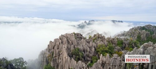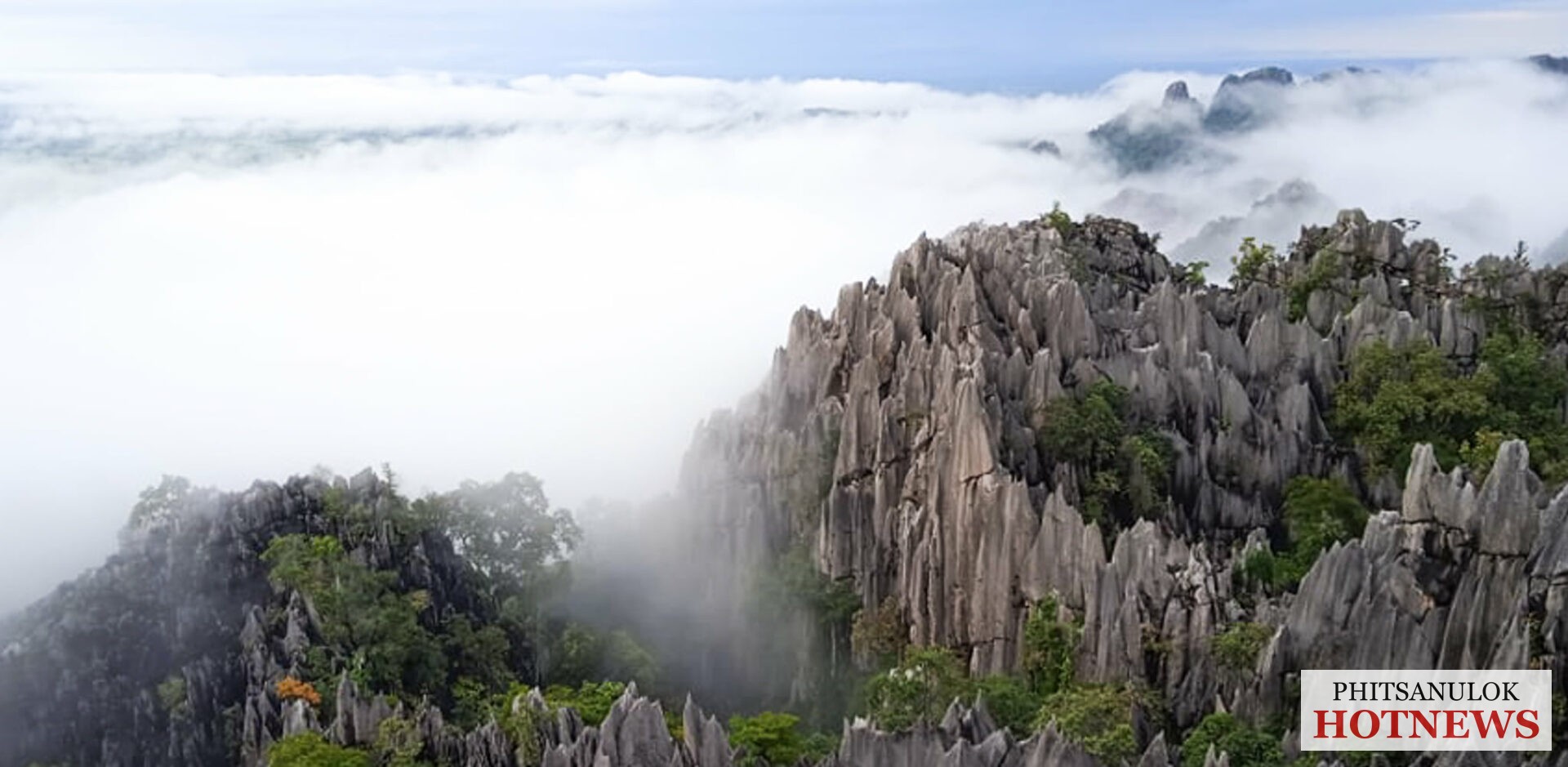 วันนี้ ( 30 ต.ค.) ผู้สื่อข่าวรายงานว่า หลังจากเริ่มที่จะเข้าสู่ฤดูหนาว ทำให้อุณหภูมิตามยอดเขา เริ่มที่จะลดลงบ้างแล้ว โดยเฉพาะเช้าวันที่บ้านมุง อ.เนินมะปราง จ.พิษณุโลก มีภูเขาหินปูนอายุหลายร้อยล้านปี ลายล้อมหมู่บ้าน และในช่วงนี้มีนักท่องเที่ยว จำนวนมากต่างขึ้นไปพิชิตยอดเขาหินปูนล่องเรือตาหมื่น อัญมณีแห่งบ้านมุง เช้าวันนี้โชคดีอ่ากาศเย็นลง อยู่ที่ ประมาณ 18 องศา และเกิดทะเลหมอกยามเช้าปกคลุมหมู่บ้านบ้านมุง อ.เนินมะปราง ทำให้ผู้ที่อยู่บนยอดเขาหินปูน มองเห็นเป็นทะเลหมอกรายล้อมภูเขาหินปูนสวยงาม ไม่แพ้ เมืองจีนแต่อย่างใด ทำให้นักท่องเที่ยวต่างเก็บภาพสวยงาม ซึ่งถือว่ามีโอกาสไม่มาก ที่จะเกิดทะเลหมอกยามเช้าให้เห็นกัน
