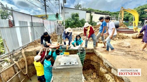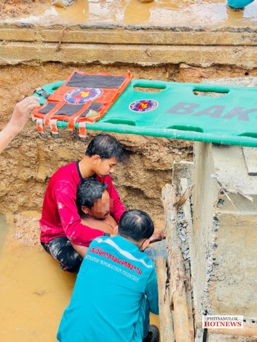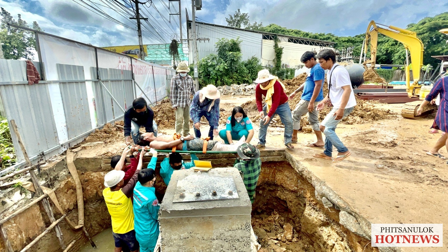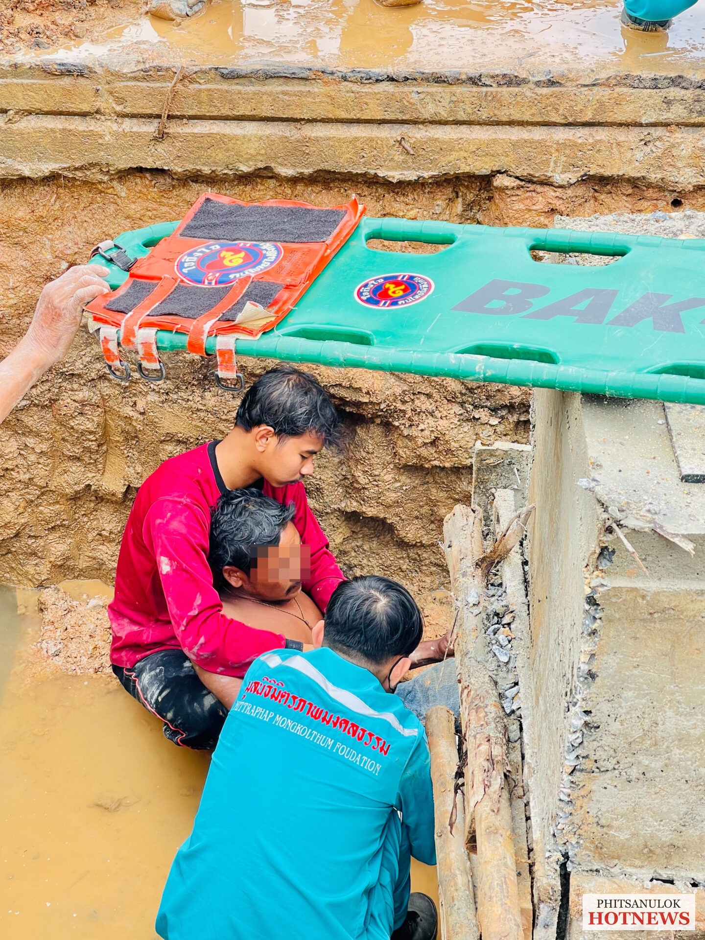 ทางเจ้าหน้าที่กู้่ภัยมูลนิธิมิตรภาพมงคลธรรม จึงได้ช่วยกันนำอุปกรณ์มาตักดินออก พร้อมกับนำเครื่องช่วยเหลือดามขาที่หักผิดรูปไว้ และนำขึ้นมาจากหลุมตอม้อ รีบนำส่งโรงพยาบาลมหาวิทยาลัยนเรศวรทันที