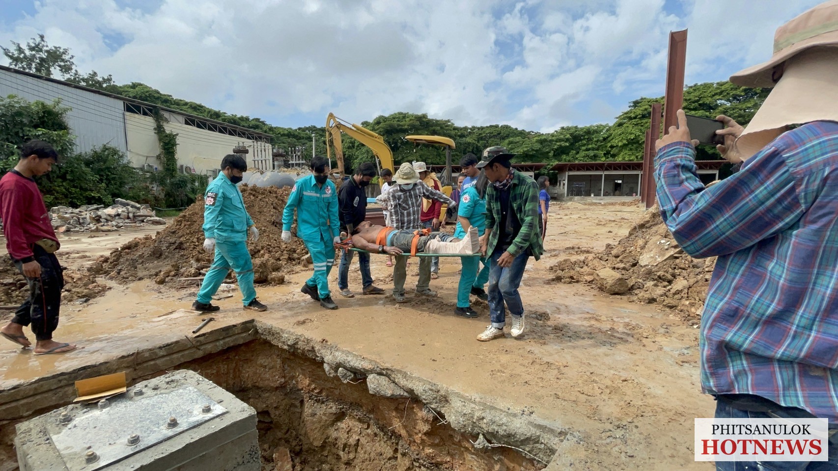 สอบถามเบื้องต้นนายอาทร คนงานดังกล่าว ก่อนเกิดเหตุได้ลงไปถอดแบบที่หล่อปูนตอม้อไว้ออก ซึ่งมีความลึกประมาณ 2 เมตร แต่ในช่วงเช้าที่ผ่านมาเกิดฝนตกหนัก ทำให้ดินอ่อนตัว และสไลด์ทับขาของนายอาทร จนได้รับบาดเจ็บ เพื่อนคนงานด้วยกันเห็นเหตุการณ์ก็รีบแจ้งเจ้าหน้าที่กู้ภัยมาช่วยเหลือดังกล่าว