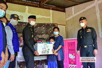 โดยในวันนี้ พล.ต.ทวีศักดิ์ วงศ์ทวีทรัพย์ ผบ.กองพลพัฒนาที่ 3 พร้อมด้วย พ.อ.สมใจ คิดเกื้อการุญ รอง ผบ. พ.อ.รุ่งเพชร คนทัด เสธนาธิการ พลพัฒนาที่ 3 ได้เดินทางไปที่บ้านของสองหนูน้อย เพื่อนำสิ่งของเครื่องใช้ภายในบ้านที่ได้รับการบริจาคของคุณนกซึ่งอยู่ที่ประเทศญี่ปุ่น ได้สั่งซื้ออุปกรณ์เครื่องใช้ภายในบ้าน อาทิ ที่นอน หมอน ผ้าห่ม ตู้ใส่ของและตู้เสื้อผ้า พร้อมกับเงินทุนการศึกษา อีก 5,000 บาท และตะกร้าปันใจให้กัน จากครอบครัวคิดเกื้อการุญ โดยมีว่าที่ ร.ต.ศราวุธ จันทวงศ์ นายอำเภอวัดโบสถ์ ผู้นำชุมชนท้องถิ่น ผู้ใหญ่บ้าน และหน่วยงานที่เกี่ยวข้อง ร่วมมอบสิ่งของต่างๆให้กับสองพี่น้อง พร้อมกันนี้ทาง ผบ.พลพัฒนาที่ 3 ได้มอบเงินสนับสนุนช่วยเหลืออีกจำนวนหนึ่ง
