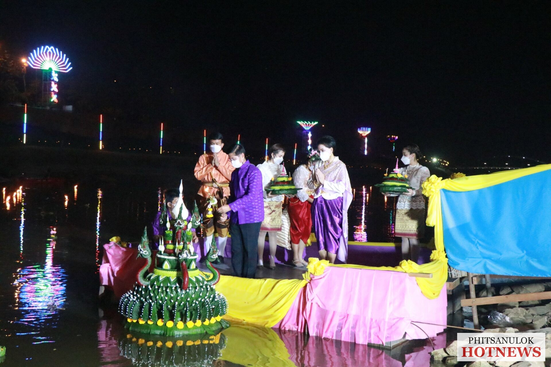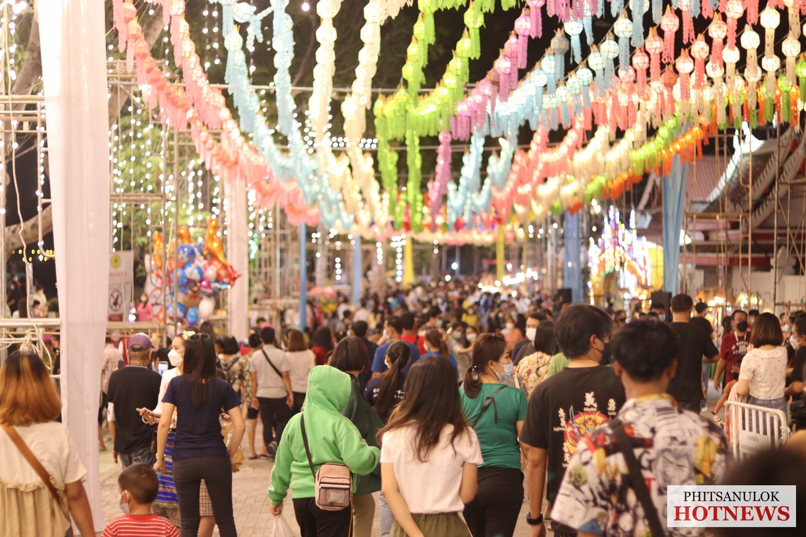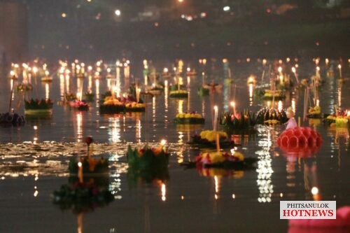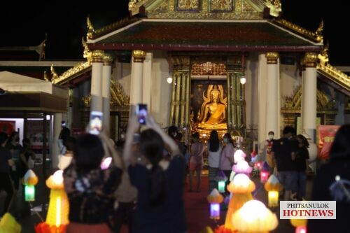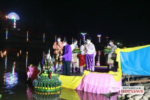 วันที่ 19 พฤศจิกายน 2564 ที่หน้าวัดพระศรีรัตนมหาธาตุวรมหาวิหารหรือวัดใหญ่ อ.เมือง จ.พิษรุโลก คลาคล่ำไปด้วยผู้คนที่เดินทางมาร่วมงานลอยกระทงแลอดีตศรัทธาแห่งสายน้ำ ที่ทางจังหวัดพิษณุโลกร่วมกับเทศบาลนครพิษณุโลกจัดขึ้น เพื่อเป็นการอนุรักษ์ สืบสานภูมิปัญญาต่างๆ ซึ่งเป็นเอกลักษณ์ของชาติให้คงอยู่ โดยการจัดกิจกรรมการจำหน่ายอาหารไทยโบราณ การแต่งกายชุดไทยเที่ยวชมงาน การตกแต่งสถานที่จัดงานไว้อย่างสวยงาม ซึ่งทางคณะกรรมการจัดงานได้มีมาตรการในการควบคุมดูแลอย่างเข้มงวดภายใต้สถานการณ์การแพร่ระบาดของโรคโควิด-19 เพื่อความปลอดภัยจึงขอความร่วมมือประชาชนและนักท่องเที่ยวปฏิบัติตามมาตรการ D-M-H-T-Tอย่างเคร่งครัดด้วย
