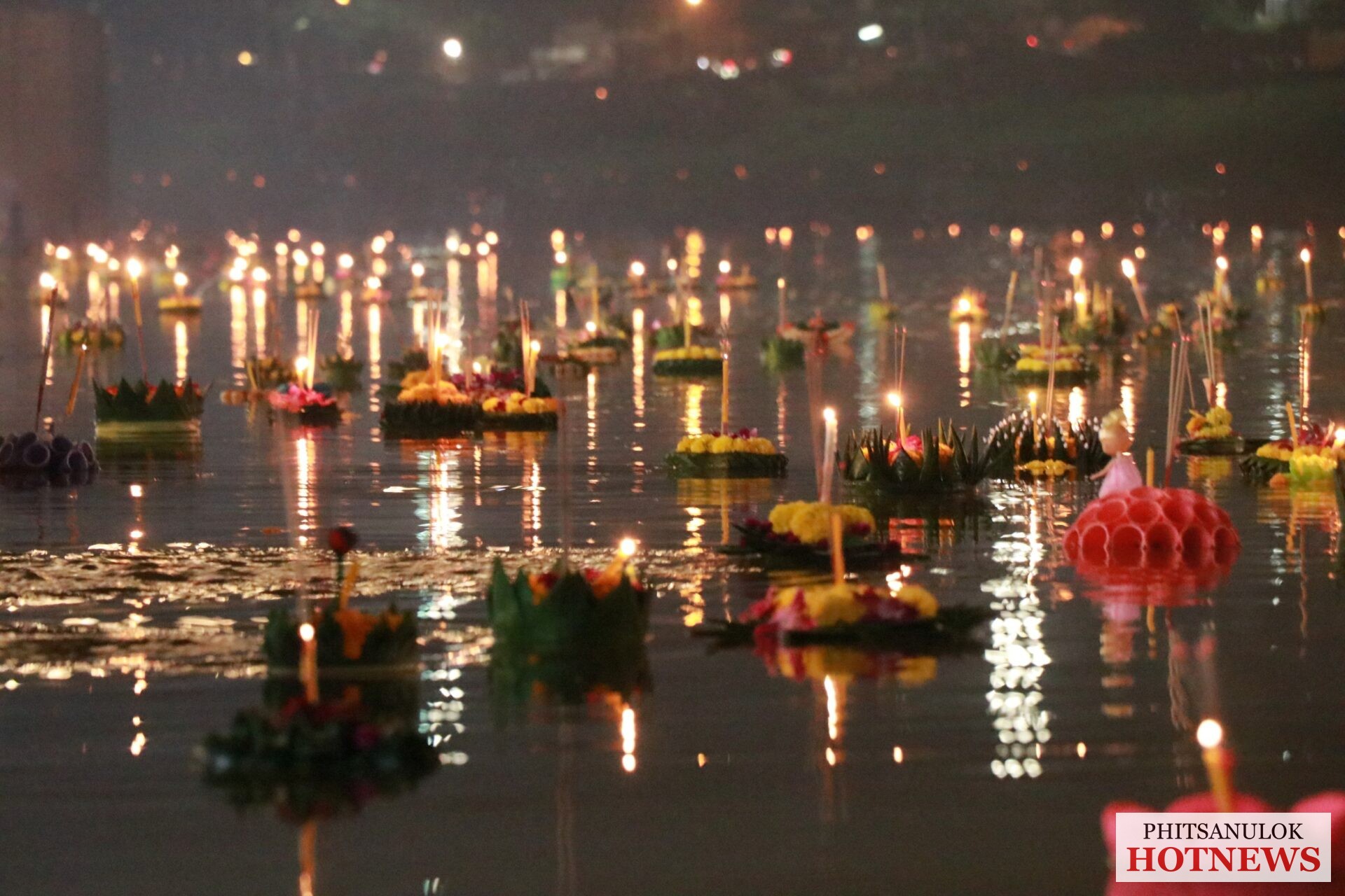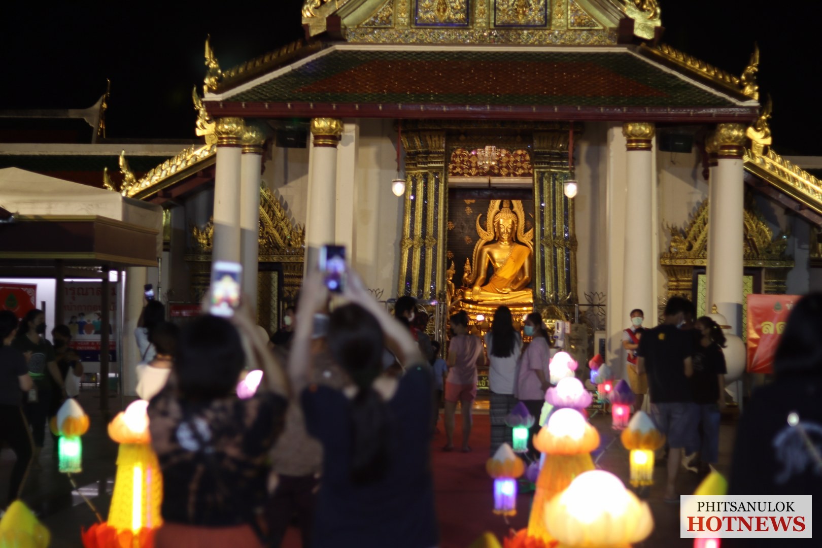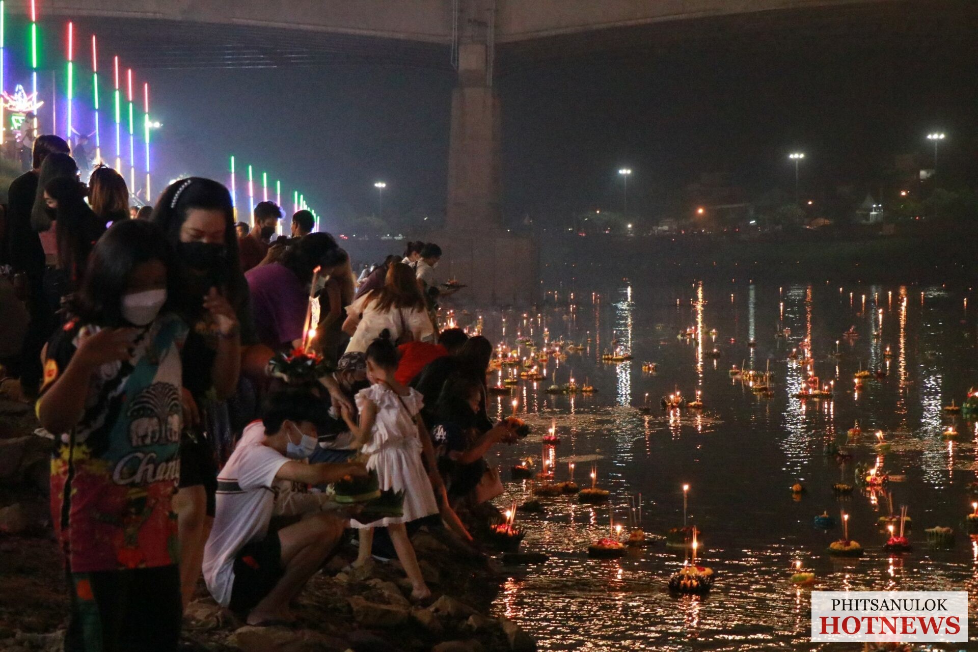 วันที่ 19 พฤศจิกายน 2564 ที่หน้าวัดพระศรีรัตนมหาธาตุวรมหาวิหารหรือวัดใหญ่ อ.เมือง จ.พิษรุโลก คลาคล่ำไปด้วยผู้คนที่เดินทางมาร่วมงานลอยกระทงแลอดีตศรัทธาแห่งสายน้ำ ที่ทางจังหวัดพิษณุโลกร่วมกับเทศบาลนครพิษณุโลกจัดขึ้น เพื่อเป็นการอนุรักษ์ สืบสานภูมิปัญญาต่างๆ ซึ่งเป็นเอกลักษณ์ของชาติให้คงอยู่ โดยการจัดกิจกรรมการจำหน่ายอาหารไทยโบราณ การแต่งกายชุดไทยเที่ยวชมงาน การตกแต่งสถานที่จัดงานไว้อย่างสวยงาม ซึ่งทางคณะกรรมการจัดงานได้มีมาตรการในการควบคุมดูแลอย่างเข้มงวดภายใต้สถานการณ์การแพร่ระบาดของโรคโควิด-19 เพื่อความปลอดภัยจึงขอความร่วมมือประชาชนและนักท่องเที่ยวปฏิบัติตามมาตรการ D-M-H-T-Tอย่างเคร่งครัดด้วย
