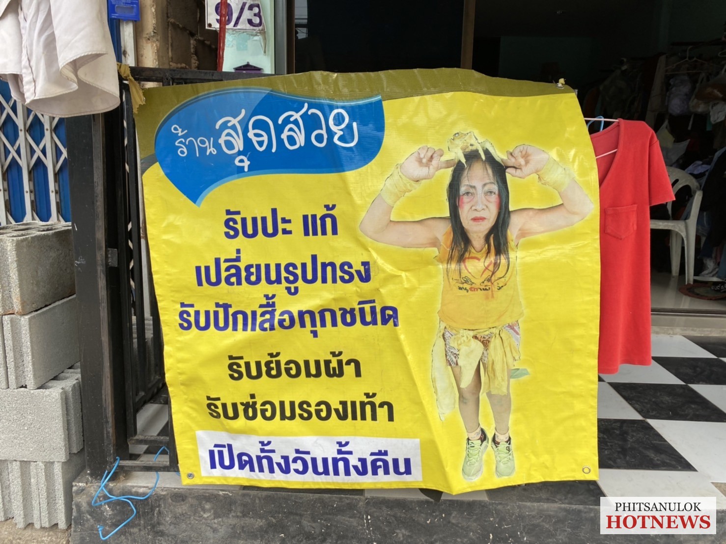 ผู้สื่อข่าวรายงานว่าที่บริเวณย่านสี่แยกวัดโพธิ์ญาณ ถนนเอกาทศรฐ อ.เมือง จ.พิษณุโลก ซึ่งเป็นร้านเย็บผ้า แก้ เปลี่ยนรูปทรงเสื้อผ้า ชื่อร้าน ‘‘สุดสวย’’ ซึ่งเจ้าของร้านมีสไตล์ด้วยการแต่งหน้า แต่งตัวที่มีสีสันโดดเด่นของเจ้าของร้านทำให้เป็นที่จดจำของผู้คนที่ขับรถผ่านไปมา