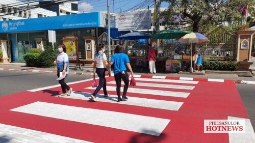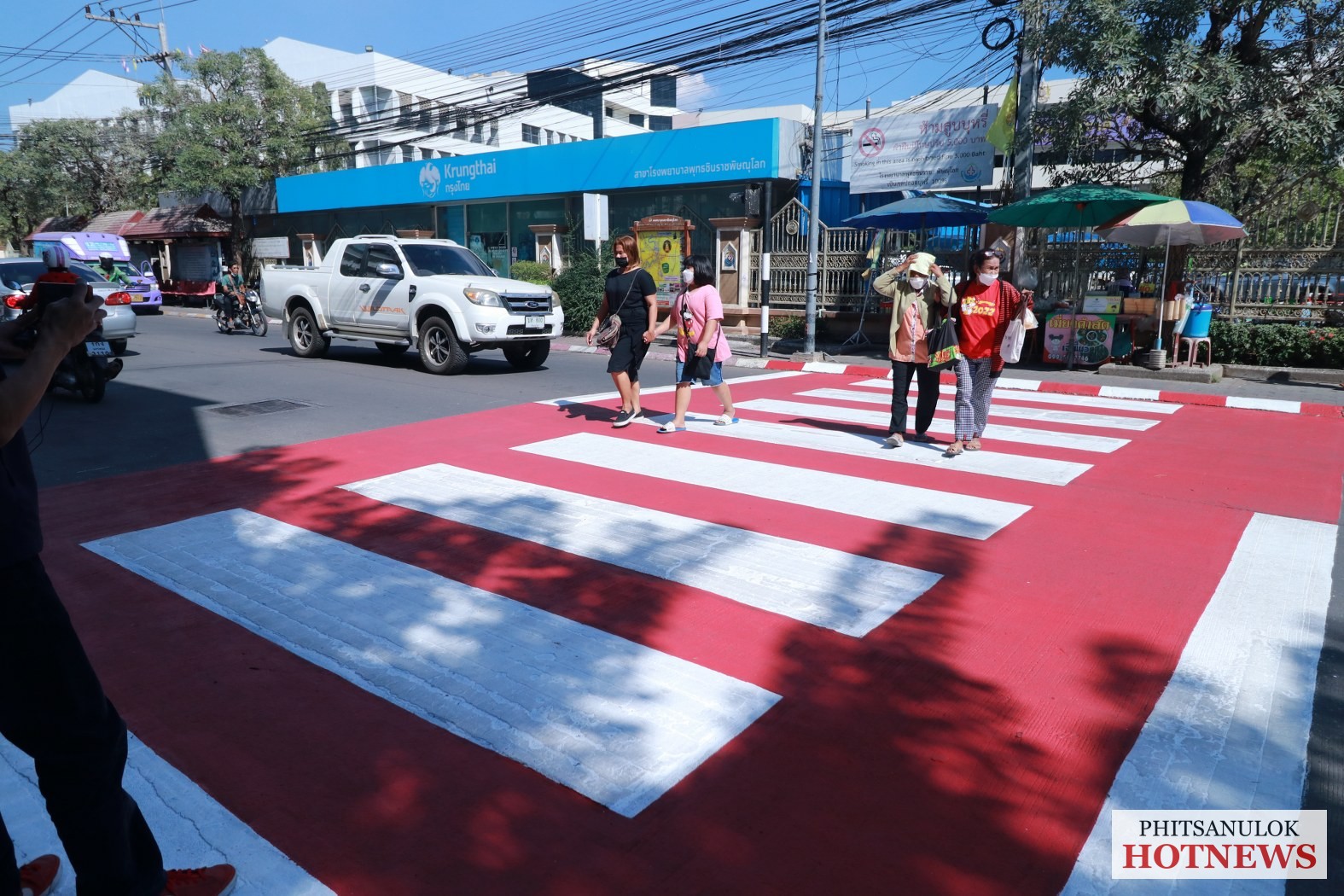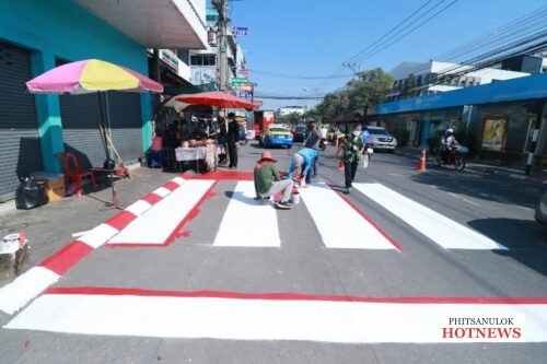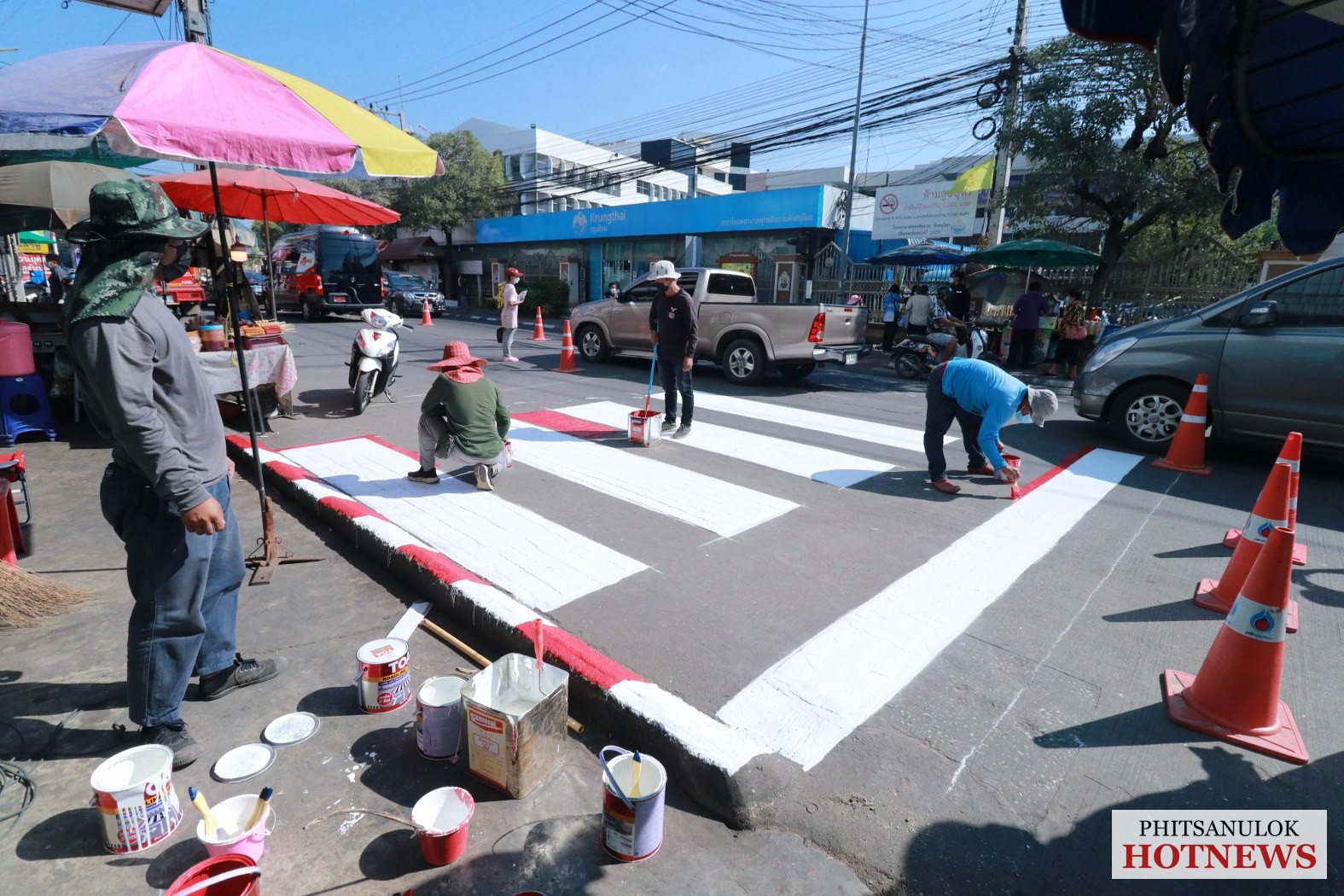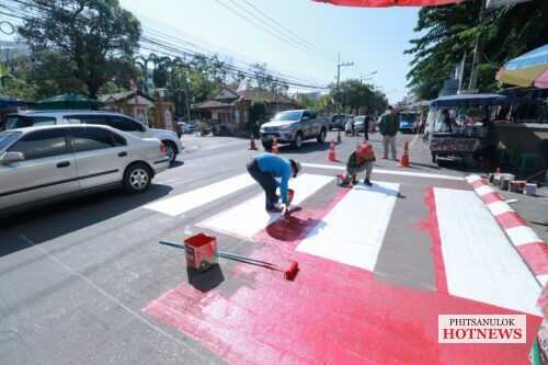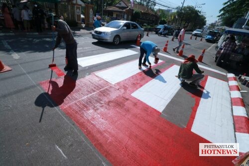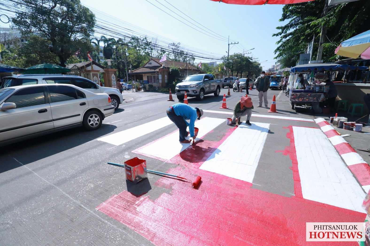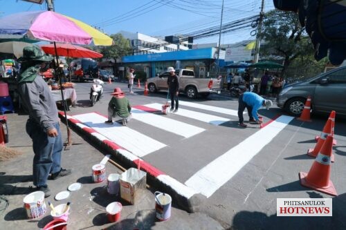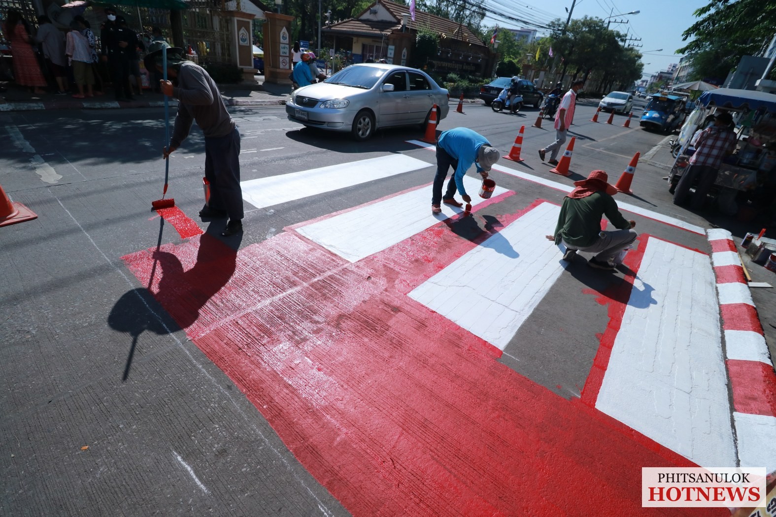 วันนี้ ( 26 ม.ค.) นางเปรมฤดี ชามพูนท นายกเทศมนตรีนครพิษณุโลก พร้อมเจ้าหน้าที่ เดินหน้าทาสีทางม้าลายบริเวณถนนธรรมไตรปิฏก หน้าโรงพยาบาลพุทธชินราช จ.พิษณุโลก ทั้งนี้เป็นการเพิ่มความชัดเจน ของเส้นทางม้าลายซึ่งเป็นสีแดง-ขาว เพื่อให้เกิดการระมัดระวังไม่ว่าจะเป็นผู้ขับขี่รถยนต์หรือผู้คนบนท้องถนน โดยลายสีขาวของทางม้าลายจะสะท้อนแสง ซึ่งทำให้มองเห็นได้ดีในเวลากลางคืน หรือบริเวณสถานที่ที่ไม่มีแสงไฟ อีกด้วย