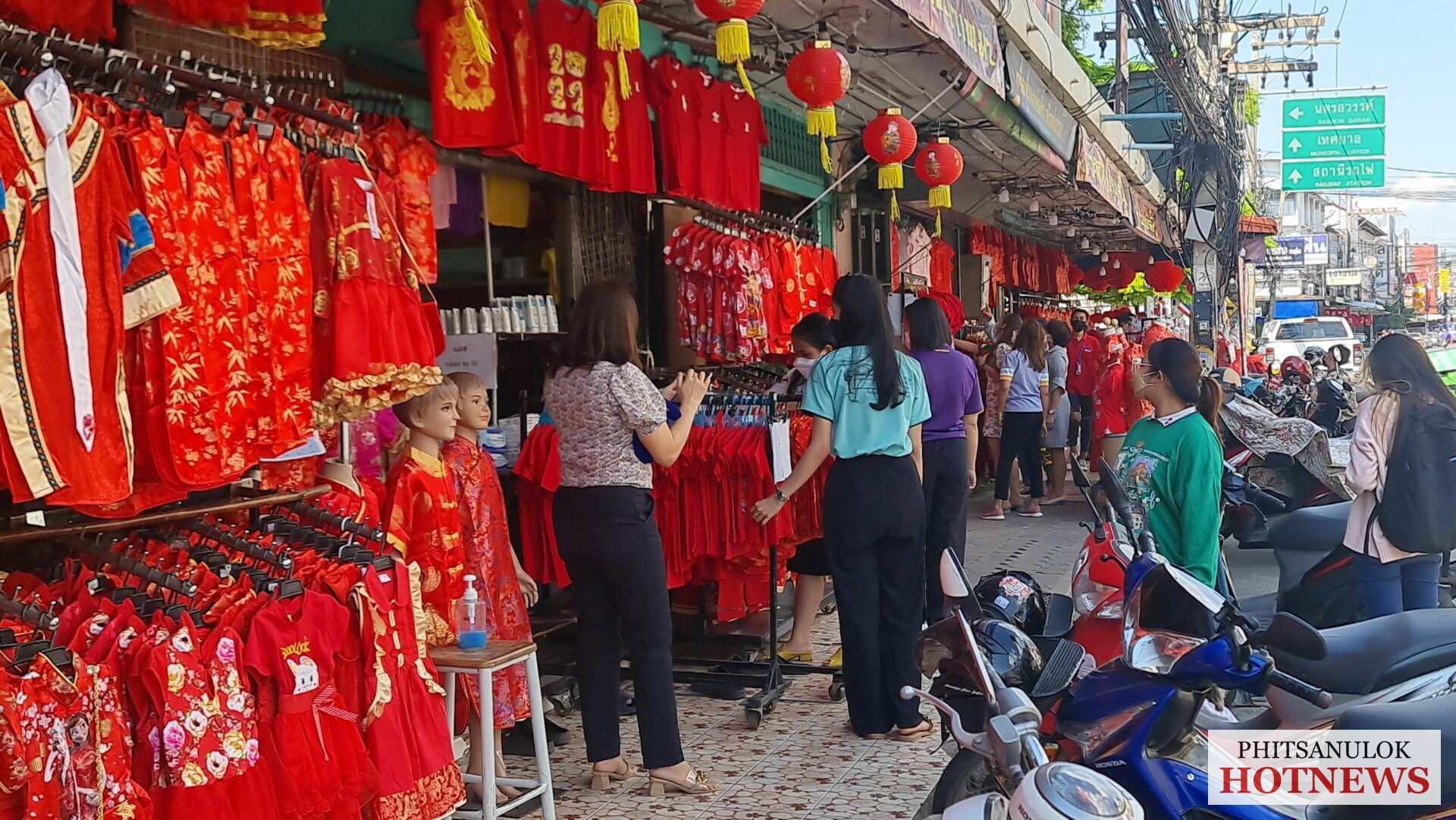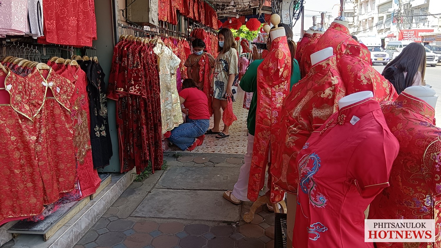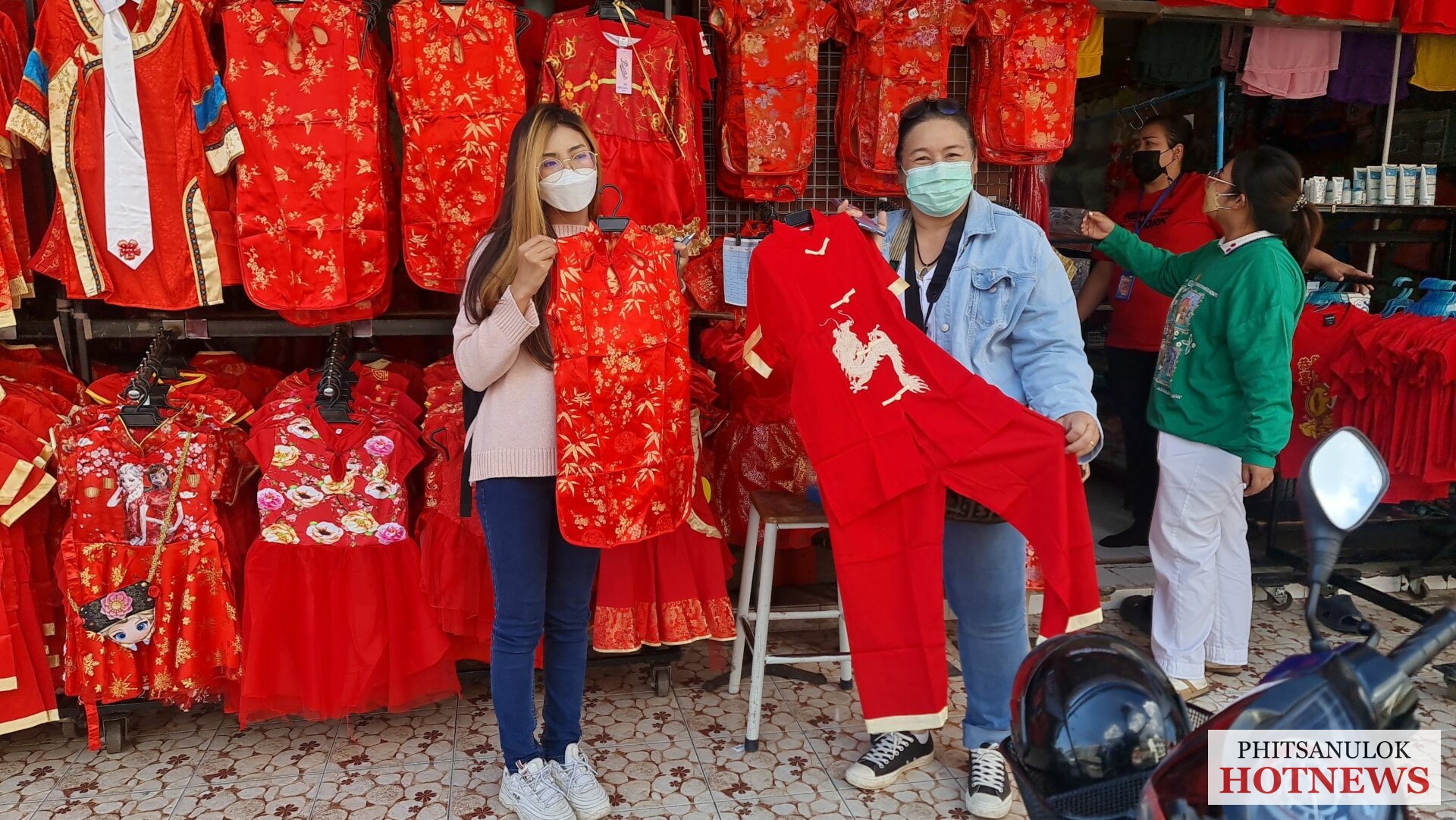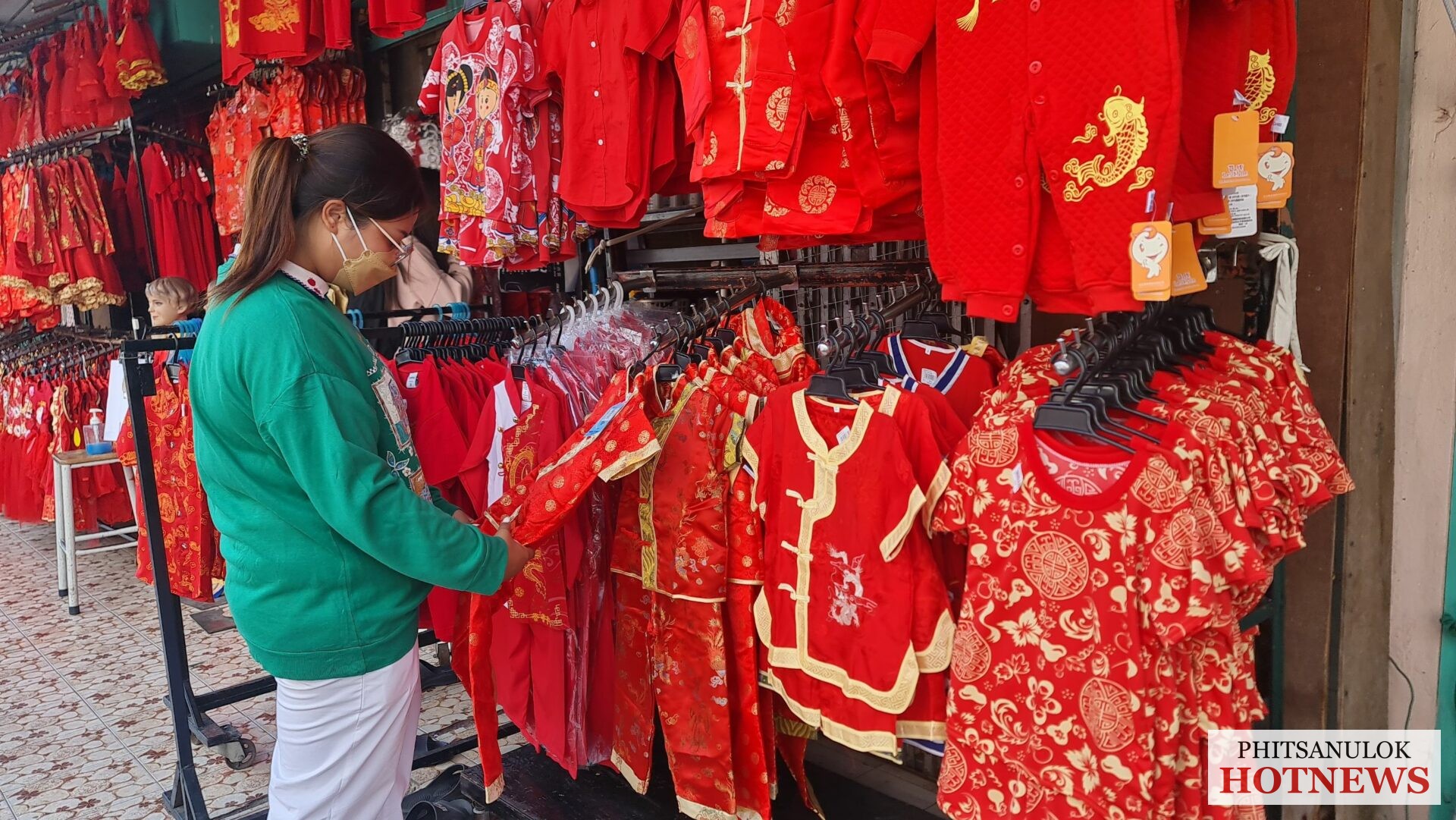วันที่ 26 มกราคม 2565 ผู้สื่อข่าวรายงานว่า ที่ร้านน้องโบ๊เบ๊ ประตูน้ำ 2 ร้านขายชุดกี่เพ้ารายใหญ่ใจกลางเมืองพิษณุโลก ตั้งอยู่ที่ 197/4-5 ถนนเอกาทศรถ ตำบลในเมือง อำเภอเมือง จังหวัดพิษณุโลก วันนี้บรรยากาศในร้านตกแต่งด้วยโคมไฟกระดาษสีแดง และโคมไฟจีนสีแดงเรียงรายทั่วทั้งร้าน ให้ความรู้สึกถึงบรรยากาศของวันตรุษจีน ทำให้ดึงดูดความสนใจจากลูกค้าได้เป็นอย่างดี รวมถึงมีโปรโมชั่นพิเศษมากมายให้กับลูกค้าทุกท่านที่ซื้อชุดกี่เพ้าของทางร้าน เพราะว่าช่วงนี้ใกล้เข้าสู่ช่วงเทศกาลตรุษจีนแล้ว โดยคนไทยเชื้อสายจีนส่วนใหญ่ที่เริ่มหลั่งไหลมาซื้อชุดกี่เพ้าไว้รอสวมใส่ในเทศกาลตรุษจีนที่กำลังจะมาถึงนี้ รวมทั้งเด็กนักเรียน นักศึกษา หรืออาจารย์ ที่ต่างมาซื้อชุดกี่เพ้าเพื่อไปร่วมกิจกรรมวันตรุษจีนของโรงเรียน ซึ่งคนจีนมีความเชื่อว่าเทศกาลตรุษจีนเปรียบเสมือนวันปีใหม่ของคนจีน ถือว่าเป็นหนึ่งในร่องรอยของประเพณีและพิธีกรรมที่มีประวัติความเป็นมายาวนานกว่าศตวรรษ (100ปี) ที่ผูกสิ่งดี ๆ ไว้กับทุกสิ่งทุกอย่างที่เป็นมงคลในชีวิตตั้งแต่อาหาร ของมงคล สีเสื้อผ้า ไปจนถึงกิจกรรมต่าง ๆ ตลอดช่วงเทศกาลกว่า 15 วัน