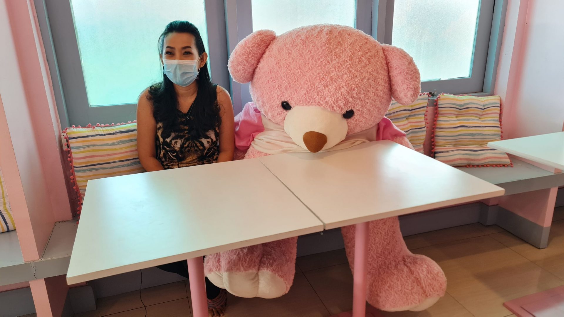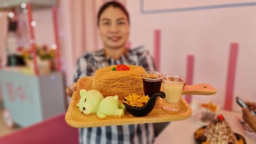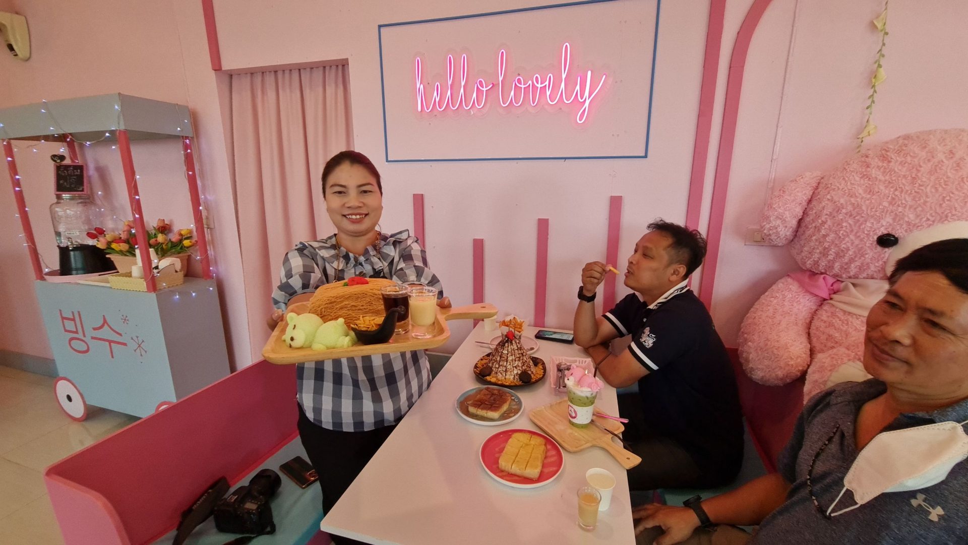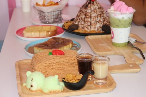 นางสาวสรัญญา สำราญ อายุ 48 ปี เจ้าของร้านเล่าให้ฟังว่าแต่เดิมร้านเปิดเป็นร้านกาแฟคาเฟ่ เปิดมาได้ประมาณ 7 ปี การแข่งขันค่อนข้างสูงเพราะคาเฟ่ ร้านกาแฟ ในพิษณุโลก เกิดขึ้นเยอะมากๆ จนกระทั่งคุณป้ามีโอกาสไปนั่งทานบิงซูที่ร้านหนึ่งก็บอกว่าอร่อยนะ ตัวเราเองก็ไปชิม ก็อร่อยจริงๆ เลยปรับเปลี่ยนร้านจากคาเฟ่กาแฟมาเป็นคาเฟบิงซู โดยรีโนเวทร้านใหม่ทั้งหมด เน้นโทนสีชมพูสดใจ และมุมถ่ายรูปเยอะๆ และก็มีตุ๊กตาพี่หมีสีชมพูตัวใหญ่นั่งต้อนรับลูกค้ากลางร้นอีกด้วย เพราะเราต้องปรับตัวให้ทันกับเจนใหม่ เปลี่ยนกลุ่มลูกค้าเป็นเยาวชน เป็นครอบครัวที่มีเยาวชน ก็จะหลากหลายกว่า อีกอย่างสูตรบิงซูของเรา การันตีได้เลยว่านุ่ม ไม่หวานมากแน่นอน สำหรับเมนูบิงซู ราคาเริ่มต้นเพียง 150 บาท ทานได้ 3-4 คน ต้องบอกว่าไม่แพงเลย เมนู Toast Bread เริ่มต้นที่ 29 บาท Honey Toast เริ่มต้นที่ 119 บ้านและเมนู ทานเล่นอย่าง Snacks menu ก็เริ่มต้นที่ 59 บาทเท่านั้น