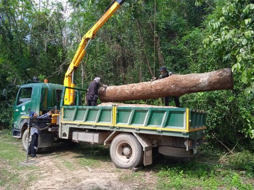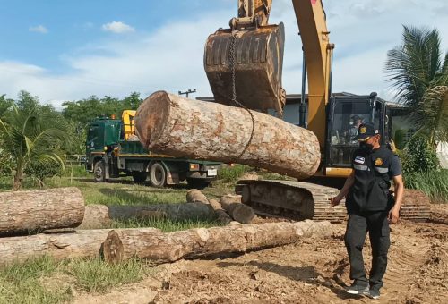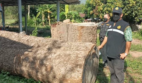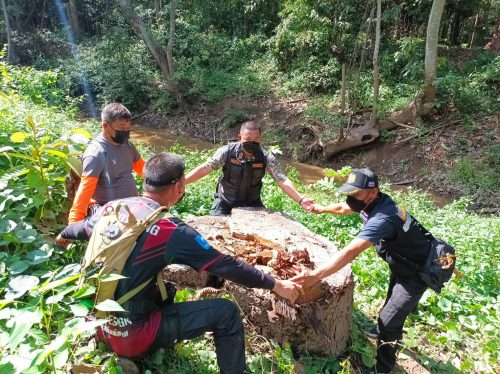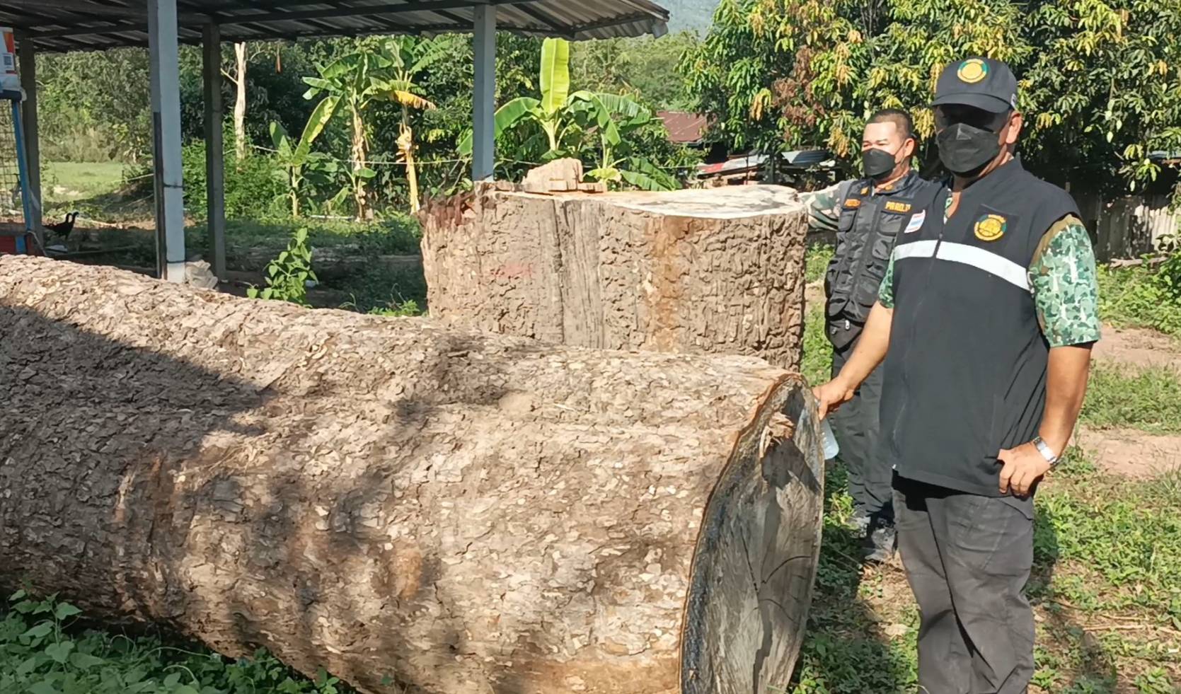 วันนี้( 25 มี.ค.2565) นายศักดิ์ปรินทร์ สุรารักษ์ หัวหน้าชุดเฉพาะกิจพิเศษ สำนักบริหารพื้นที่อนุรักษ์ที่ 11, นายธีรพล กาญจนโกมล หน.สายตรวจที่ 1 พิษณุโลก เจ้าหน้าที่ป่าไม้ หน่วยฯพล.8 (น้ำยาง) สปจ.ที่ 4 สาขาพิษณุโลก กรมป่าไม้ ร่วมกันออกลาดตระเวน ตรวจปราบปรามเพื่อป้องปรามการกระทำผิดกฎหมายว่าด้วยการป่าไม้และสัตว์ป่า โดยใช้มอเตอร์ไซค์ปฏิบัติภารกิจ กระทั่งลาดตระเวนมาถึงบริเวณบ้านเหล่าหญ้า ม.6 ต.แก่งโสภา อ.วังทอง จ.พิษณุโลก พบเห็นไม้ยางนาท่อนขนาดยักษ์ ลักษณะท่อนโคนต้นจำนวน 2 ท่อน วางกองอยู่ไม่ห่างถนนในหมู่บ้าน สอบถามชาวบ้านว่า ลานบริเวณดังกล่าวมีรถพ่วงชักลากไปออกไปก่อนหน้านี้ ตรวจสอบพบบริเวณลาน มีร่องรอยรถบรรทุก บังเอิญว่า ไม่สามารถชักไม้ยางนา 2 ท่อนดังกล่าวไปได้ เนื่องจากไม้ยางมีขนาดใหญ่เกินไป