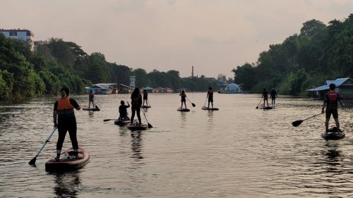 วันนี้ 30 มีนาคม ผู้สื่อข่าวรายงานว่า ที่บริเวณริมแม่น้ำน่าน หน้าพระราชวังจันทน์ เทศบาลนครพิษณุโลก กลุ่มเยาวชนและประชาชนทั่วไปที่ชื่นชอบกิจกรรมทางน้ำ ร่วมเล่นกิจกรรมพาย Sup board กีฬาท้าทายแอดเวนเจอร์ทางน้ำสายน้ำ ภายในแม่น้ำน่านที่ไหลผ่านกลางเมืองพิษณุโลก ขึ้น “Sup board” ยืนพายตั้งแต่บริเวณริมน้ำน่าน บริเวณตลิ่งริมแม่น้ำหน้าพระราชวังจันทน์ แล้วไปขึ้นท่าน้ำบริเวณตลิ่งหน้าวัดพันปี รวมระยะทางกว่า 5.5 กิโลเมตร ใช้เวลาการพายประมาณ 1ชั่วโมงครึ่ง ทำให้มีเวลาในการชมความสวยงามของเมืองพิษณุโลก เมื่อมองขึ้นมาจากผิวน้ำ วิถีชีวิตชุมชนชาวแพ ที่ใช้ชีวิตอาศัยอยู่ในแพของทั้งสองฝั่งริมแม่น้ำน่าน และยังสัมผัสบรรยากาศแสงอาทิตย์ยามเย็นอีกด้วย