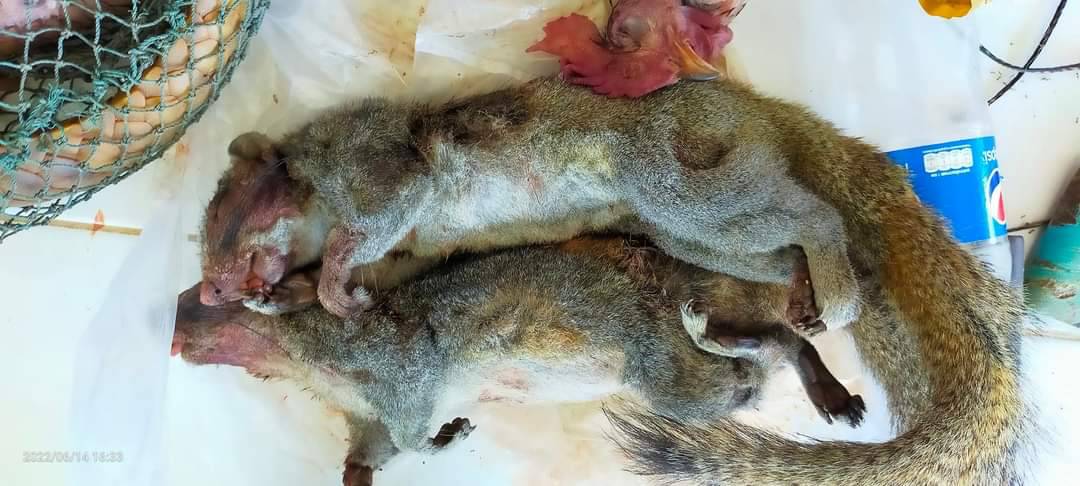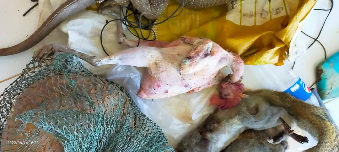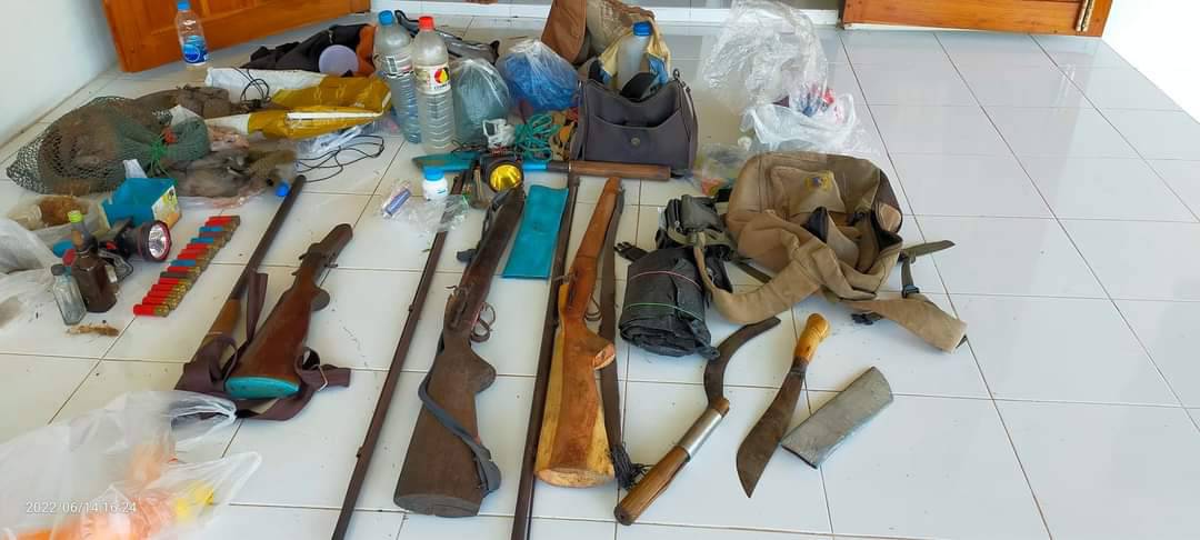 วันนี้ ( 15 มิถุนายน 2565) นายณัฐพงษ์ หงษ์ทอง หัวหน้าเขตห้ามล่าสัตว์ป่าสองแคว ออกตรวจพื้นที่พร้อมตั้งด่านตรวจสกัดผู้กระทำความผิด ตามนโยบายอธิบดีกรมอุทยานสัตว์ป่าและพันธุ์พืช โดยผอ.สำนักบริหารพื้นที่อนุรักษ์11 สั่งเน้นย้ำไม่ให้มีผู้บุกรุกหรือผู้กระทำผิดใดๆ จึงสั่งการให้เจ้าหน้าที่เขตห้ามล่าสัตว์ป่าสองแควลงตรวจพร้อมประสานไป จนท.สายตรวจ สบอ.11 สายที่ 1, จนท.เขตห้ามล่าสัตว์ป่าเขาน้อย-เขาประดู่, จนท.หน่วยป้องกันรักษาป่าที่ พล.1 (วังทอง) ตำรวจป่าไม้ (กก.4 บก.ปทส.), ตำรวจภูธรจังหวัดพิษณุโลก(ตร.ปทส.ภว.พิษณุโลก) ตั้งจุดสกัดร่วมกันในห้วงหลายวันที่ผ่าน กระทั่งล่าสุดพบว่า มีกลุ่มบุคคลเข้ามาล่าสัตว์ป่าบริเวณ ป่าท้ายบ้านท่าหนอง หมู่ที่ 1 ตำบลหินลาด อำเภอวัดโบสถ์ จึงเรียกให้หยุดและขอตรวจสอบกลุ่มบุคคลซึ่งเป็นชายทั้ง 3 คนมีท่าที่พิรุธ ระหว่างขับรถทางการเกษตรขับผ่านจุดสกัด เจ้าหน้าที่พิทักษ์ป่าจึงแสดงตัวและขอตรวจค้น พบว่า มีซากสัตว์ป่าคุ้มครอง ประกอบด้วย ซากไก่ป่า จำนวน 1 ซาก และสัตว์ป่าคุ้มครอง ประกอบด้วย ลิ่นชวา จำนวน 1 ตัว, ตะกวด จำนวน 1 ตัว และซากกระรอกปลายหางดำ จำนวน 1 ซาก (ไม่เป็นสัตว์ป่าคุ้มครอง) พร้อมอุปกรณ์การกระทำผิดอีกหลายรายการ ปืนชนิดต่างๆ จำนวน 3 กระบอก อาทิ ปืนลูกซอง ปืนแก๊บฯลฯพร้อมลูกซองจำนวน 16 นัดและลูกปืนขนาดอื่น อุปกรณ์มีด หนังสติกฯลฯ เจ้าหน้าที่จึงได้บันทึกเรื่องราว นำส่ง พนักงานสอบสวน สภ.วัดโบสถ์ เพื่อดำเนินการแจ้งข้อหาตามพรบ.สงวนและคุ้มครองสัตว์ป่า พ.ศ. 2562 ต่อไป