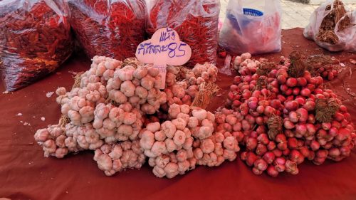 นางอำพร แม่ค้าพริก หอม กระเทียม บอกกับผู้สื่อข่าวว่า ราคา พริก หอม กระเทียม ได้ปรับขึ้นราคามาอย่างต่อเนื่องเกือบเดือนที่ผ่านมาแล้ว ทั้งนี้เนื่องจากราคาน้ำมันแพงมาโดยตลอด โดยเฉพาะกระเทียม นั้น ราคาขึ้นเกือบเท่าตัว ทำให้ราคาขนส่งแพงขึ้นตาม โดยปัจจุบัน ราคาขายส่ง ราคา 80 บาท ราคาหน้าร้าน อยู่ที่ 85 บาท ซึ่งกระเทียมแบบพวงมัดจุก จะขายดีกว่า แบบกระเทียมแกะแล้ว
