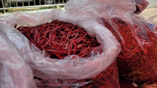 วันนี้( 24 มิ.ย.) ผู้สื่อข่าวรายงานราคาสินค้าชนิดต่างๆ ปรับตัวราคาขึ้นอย่างต่อเนื่อง โดยในวันนี้ผู้สื่อข่าวได้สำรวจราคาสินค้าที่ตลาดนัดเกษตรกร ที่บริเวณหน้าอำเภอเมืองพิษณุโลก โดยเฉพาะร้านขายพริก(พริกแห้ง) หอม กระเทียม ของนางอำพร อ้นทรัพย์ แม้ค้าชาวจังหวัดพิษณุโลก ที่ขายพริก หอม กระเทียม ที่ตระเวนขายตามตลาดนัดทั่วไป พบว่า ในช่วงนี้ราคาพริกแห้ง หอม กระเทียม ได้มีการปรับราคาขายพริก หอม กระเทียม ขึ้นอย่างต่อเนื่องเกือบเท่าตัว โดยพริกแห้ง จากเดิม ราคา 130 บาทต่อ กิโลกรัม ปรับขึ้นเป็นกิโลกรัมละ 150 บาท หอม จากราคา 40 บาท ปรับเพิ่มเป็นราคา กิโลกรัมละ 65 บาท ส่วนกระเทียม ราคาจากเดิม 45 บาท ต่อกิโลกรัม ปรับเป็นราคากิโลกรัม ละ 85 บาท
