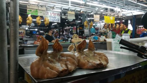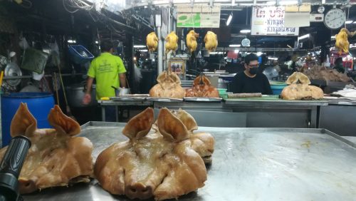 วันที่ 29 มิ.ย. 2565 นายทรงพล อินคุ้ม พ่อค้าหัวหมู เป็ด ไก่ หมูช่วง ทั้งต้มและพะโล้ ที่ร้านโตบริการ อยู่ที่ตลาดสดเทศบาล 4 หรือตลาดโคกมะตูม ต.ในเมือง อ.เมือง จ.พิษณุโลก เปิดเผยว่า หัวหมูเริ่มมีเพียงพอกับความต้องการของประชาชนแล้ว หลังจากที่ก่อนหน้านี้ ระหว่างเดือน ธ.ค.2564 – ม.ค.2565 หัวหมูมีไม่เพียงพอ เพราะเกิดโรคอหิวาห์หมูระบาด ทำให้ฟาร์มต้องกำจัดหมูทั้งหมด ส่งผลให้ปริมาณหมูในตลาดลดน้อยลง แต่ความต้องการเท่าเดิม ทำให้ราคาขายทั้งหมูเป็นและหัวหมูต้มหัวหมูพะโล้สูงขึ้นตั้งแต่ต้นปี 2565 เป็นต้นมา โดยจากเดิมราคาหมูเป็นหน้าฟาร์มช่วงปลายปี 2564 ราคากก.ละ 80 บาท เมื่อเข้าสู่ต้นปี 2565 ราคาหมูเป็นหน้าฟาร์มขยับขึ้นมาอยู่ที่ กก.ละ 100-104 บาท จนถึงล่าสุดเดือนมิถุนายน 2565 ราคาหมูเป็นหน้าฟาร์ม อยู่ที่กก.ละ 114-115 บาท