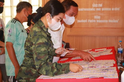 โดยบรรยากาศ มีประชาชนมารอเข้าแถว เพื่อซื้อสลากกินแบ่งราคาถูกกันจำนวนมาก ซึ่งทางเจ้าหน้าที่ ได้ประกาศให้เข้าแถว จำนวน 2 แถว และจำกัดให้แต่ละคนซื้อได้ไม่เกินคนละ 6 ฉบับ ซึ่งปรากฏว่าหลังจากเปิดขายได้เพียง 1 ชั่วโมง สลากกินแบ่งรัฐบาลก็ขายหมดเกลี้ยงหมด ส่งผลให้คนที่เดินทางมาช้า ต่างผิดหวังที่มาซื้อไม่ทัน