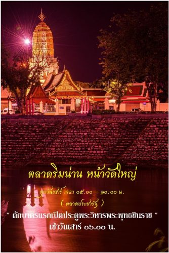 ขอเชิญชวนประชาชนทั่วไปร่วมกิจกรรมตักบาตรรับอรุณ และเดินเลือกซื้อสินค้าจากตลาดโบราณย้อนยุค บริเวณริมแม่น้ำน่าน หน้าวัดพระศรีรัตนมหาธาตุ วรมหาวิหาร ได้เป็นประจำทุกวันเสาร์ ตั้งแต่เวลา 05.00-10.00 น.