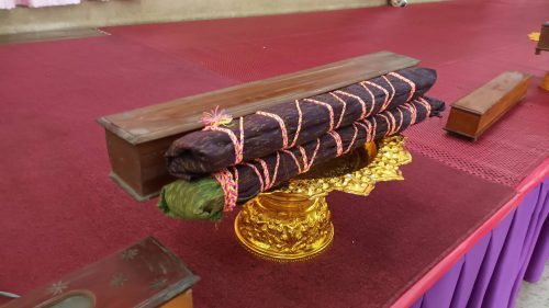 ผศ.ดร.สุพัตรา เจริญภักดี บดีรัฐ ผอ.สศว.มภร.เปิดเผยว่า การจัดทำโครงการดังกล่าว วัดราชบูรณะร่วมกับสำนักศิลปะและวัฒนธรรม มหาวิทยาลัยราชภัฏพิบูลสงคราม พิธีถวายผ่าห่อคัมภีร์โบราณถวายเป็นพระราชกุศลแด่สมเด็จพระนางเจ้าสิริกิตติ์ พระบรมราชินีนาถ พระบรมราชชนนีพันปีหลวง เนื่องในโอกาสมหามงคลเฉลิมพระชนมพรรษา 90 พรรษา ซึ่งโครงการดังกล่าว ได้นำนักศึกษารายวิชาความจริงของชีวิต ทุกชั้นปี มาร่วมทำกิจกรรม